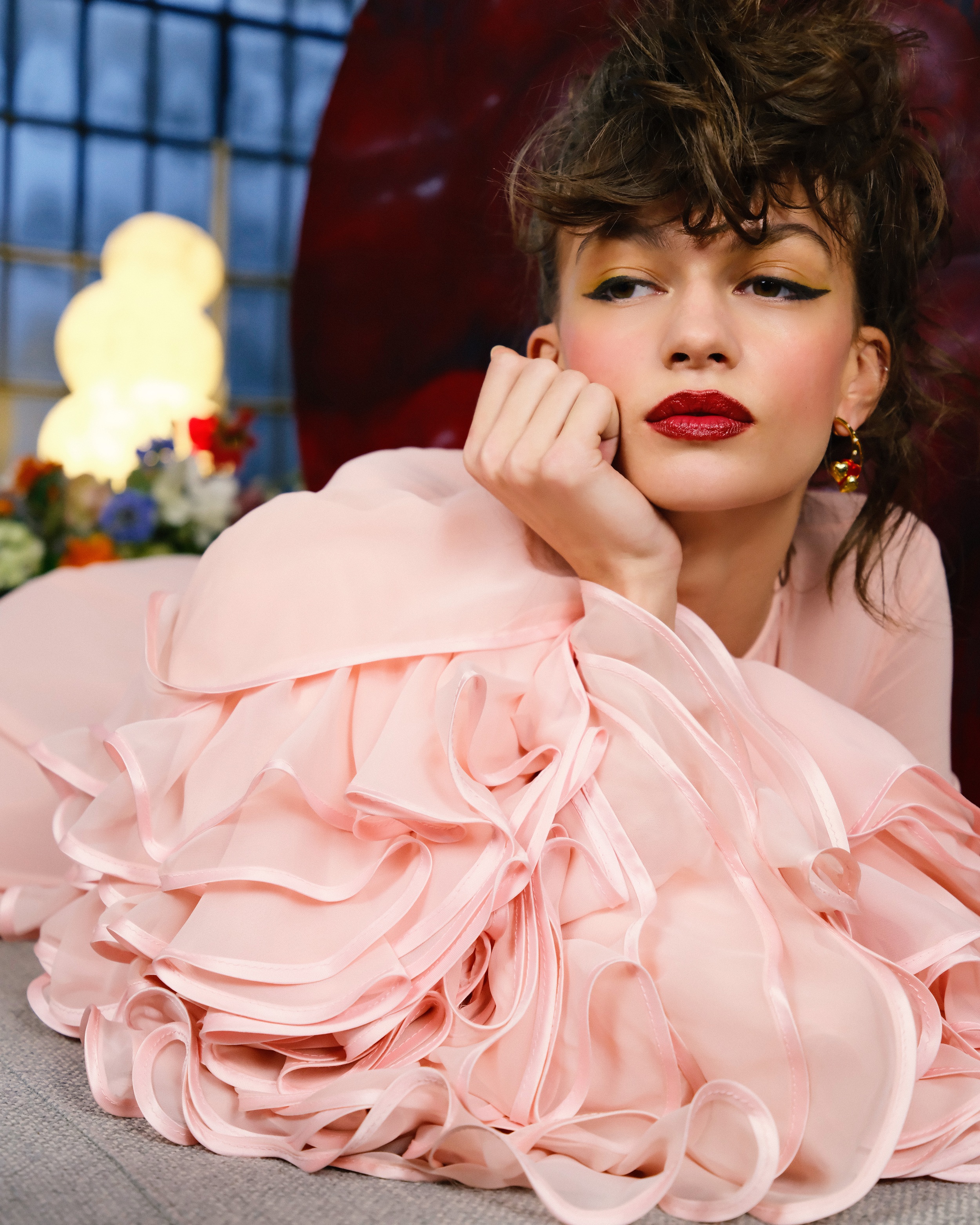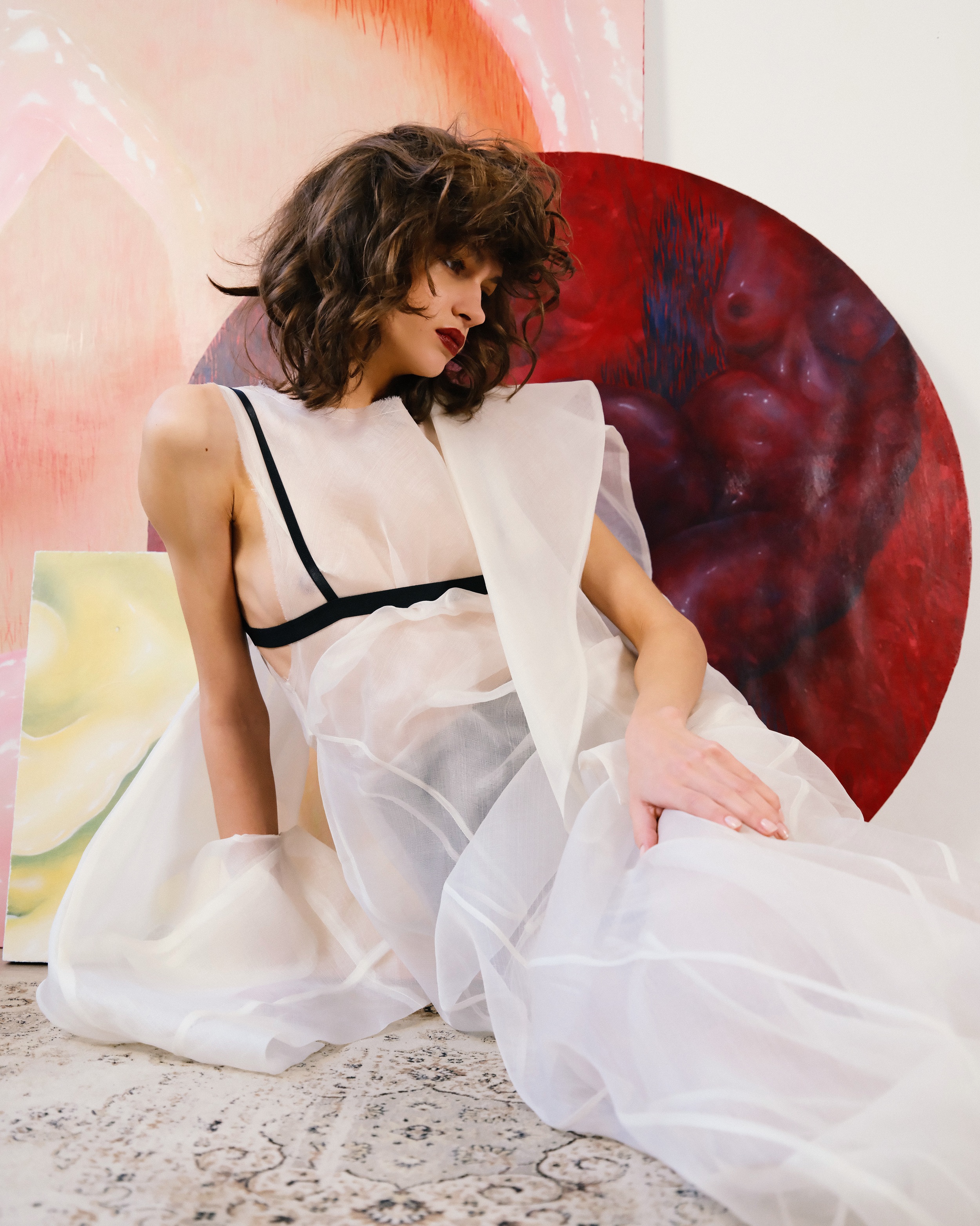Obleka: Maison Saintmarc, uhani: Ancient Future, umetnina: Elisa Pini, luč: Nori Studio (v sodelovanju z Elisa Pini)