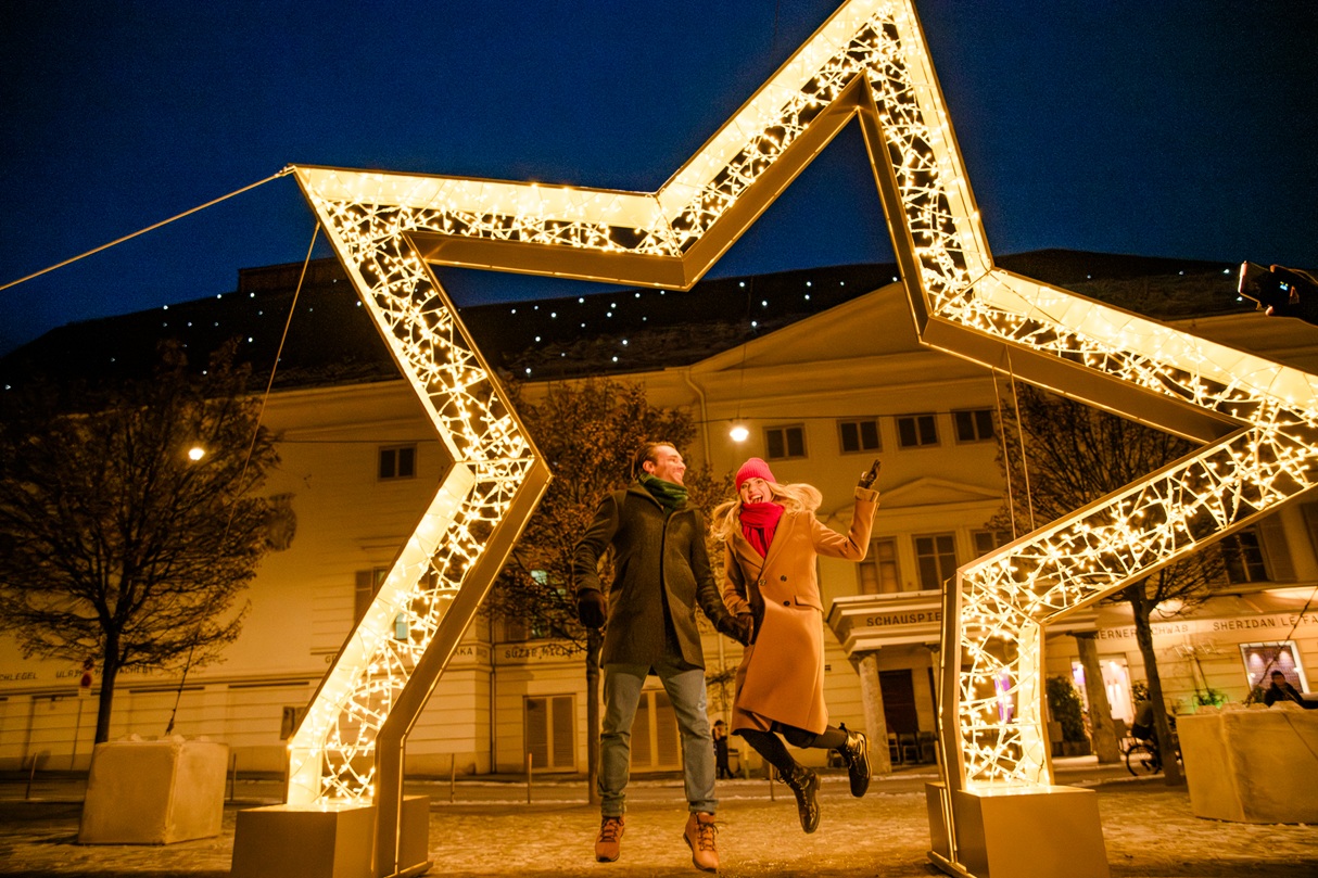 Celotno mesto postane oder za praznične trenutke. Povsod vabijo selfie točke – na primer pri osvetljenem napisu »I Love Graz« na Glavnem trgu ali pod svetlečo zvezdo na Karmeličanskem trgu. V adventnem kotičku na Schmiedgasse lahko ob toplem punču ali vroči čokoladi naredite prijeten postanek in uživate v prazničnem vzdušju.