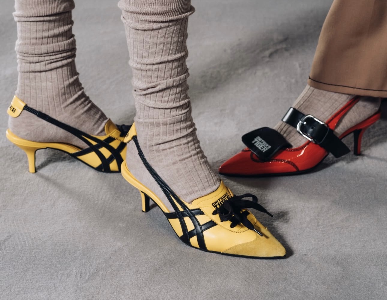 V središču kolekcije stoji reinterpretacija enega najbolj prepoznavnih modelov znamke: Onitsuka Tiger Mexico 66. Ta silhueta, ki je že nekaj sezon stalnica na modnih ulicah in družbenih omrežjih, v kolekciji AW26 doživi nepričakovano preobrazbo. Tradicionalni nizki športni copat je dobil novo modno dimenzijo, peto. Rezultat je hibrid med športnim čevljem in elegantnim modnim kosom, ki briše mejo med športno dediščino in visoko modo.