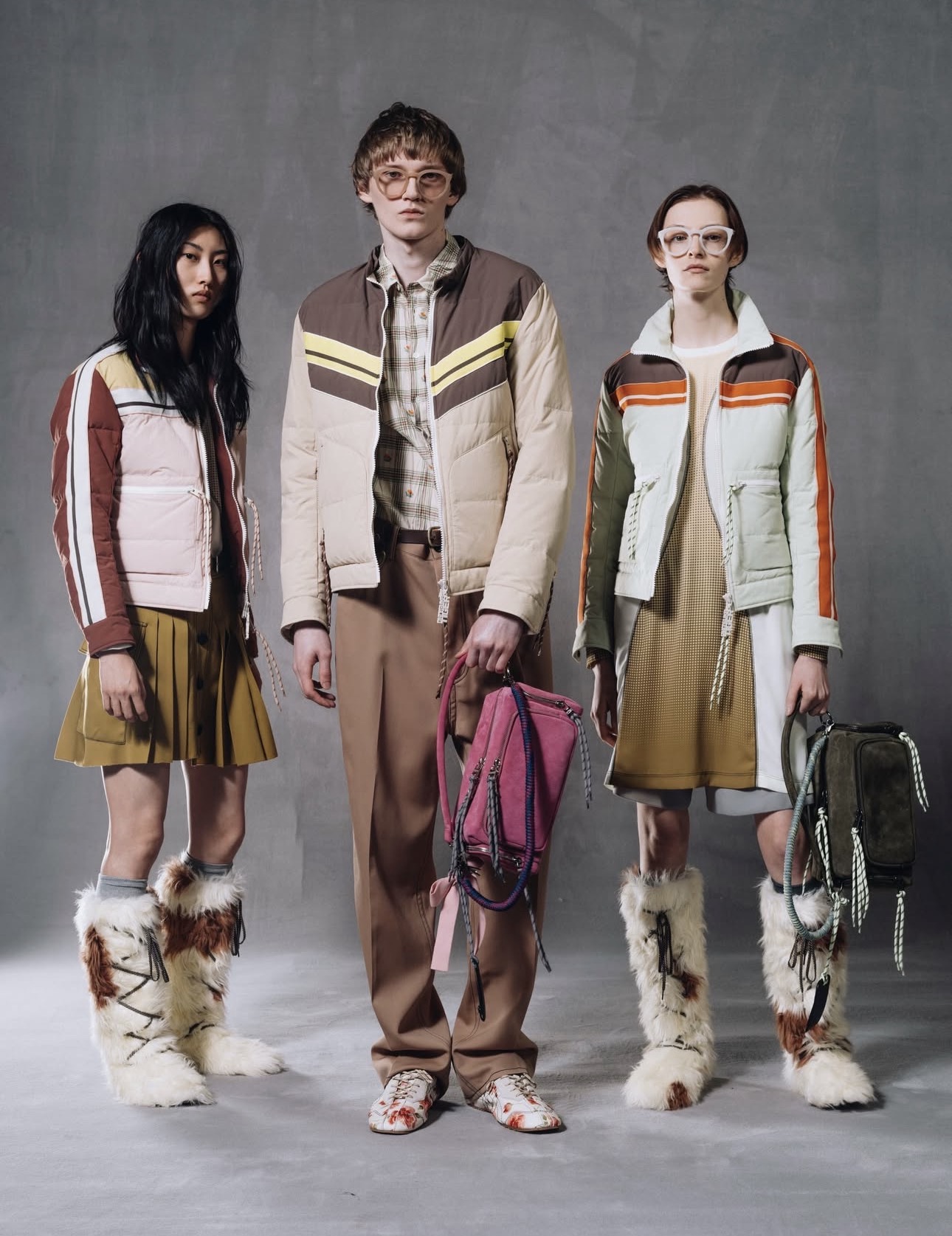 Tako se športna funkcionalnost prepleta z modno teatralnostjo. Superge postanejo čevlji s peto, športni kroji dobijo bolj strukturirane silhuete, detajli pa poudarjajo idejo, da lahko dediščina postane platforma za eksperiment.