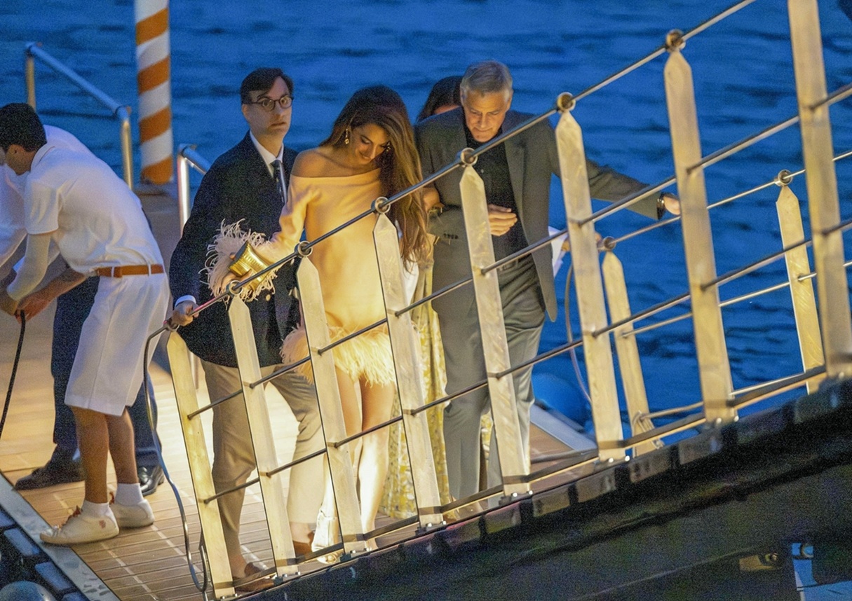Italija ima za zakonca Clooney posebno mesto v srcu, saj je to njuna poročna dežela. Čeprav sta usodni “Da, vzamem!” dahnila v Benetkah, se vedno znova rada vračata tudi k jezeru Como. Tik pred Beneškim filmskim festivalom sta se Amal in George ustavila na glamurozni večerji ob jezeru in očarala z italijansko eleganco. Amal nadaljuje svoj niz poletnih oblek s podpisom italijanskega šika »La Dolce Vita«. Priznana odvetnica je tokrat izbrala mini obleko znamke Taller Marmo v barvi breskve. Pernati detajli vzdolž krila in rokavov kličejo po italijanskem kiču! Amal je svoj videz za zmenek še poživila z bisernimi visečimi uhani in salonarji s kovinskim sijajem. Glamur je ohranila naravnost v obliki sončno posijane, sijoče polti in s svojimi značilnimi dolgimi nežnimi kodri.