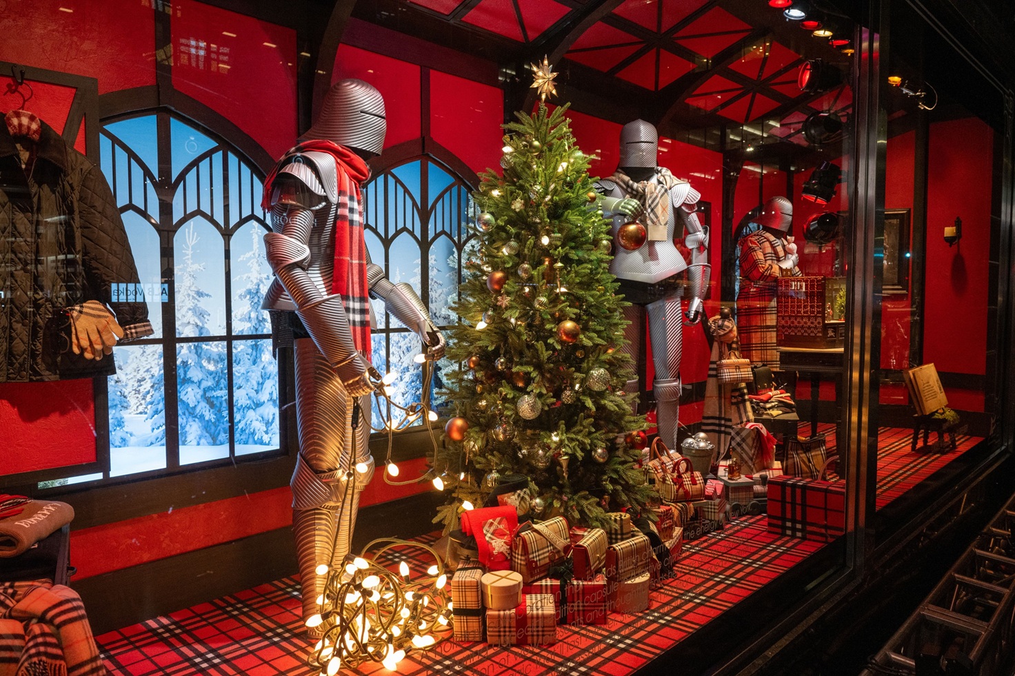 Za praznični čas je Burberry preoblikoval izložbo v newyorškem nakupovalnem središču Bloomingdale’s v prijetno britansko kočo, polno izbranih daril in mnoga imajo ikonični karo vzorec hiše, ki je tokrat odet v božično preobleko. Poleg značilnih Burberryjevih trenčkotov, dišav in palete šalov, založenih s kašmirskimi ovijalkami v široki paleti barv, si lahko kupci ogledajo praznično kapsulno kolekcijo oblačil in dodatkov z rdečimi karirastimi vzorci, ki je ekskluzivno na voljo v Bloomingdale’s.