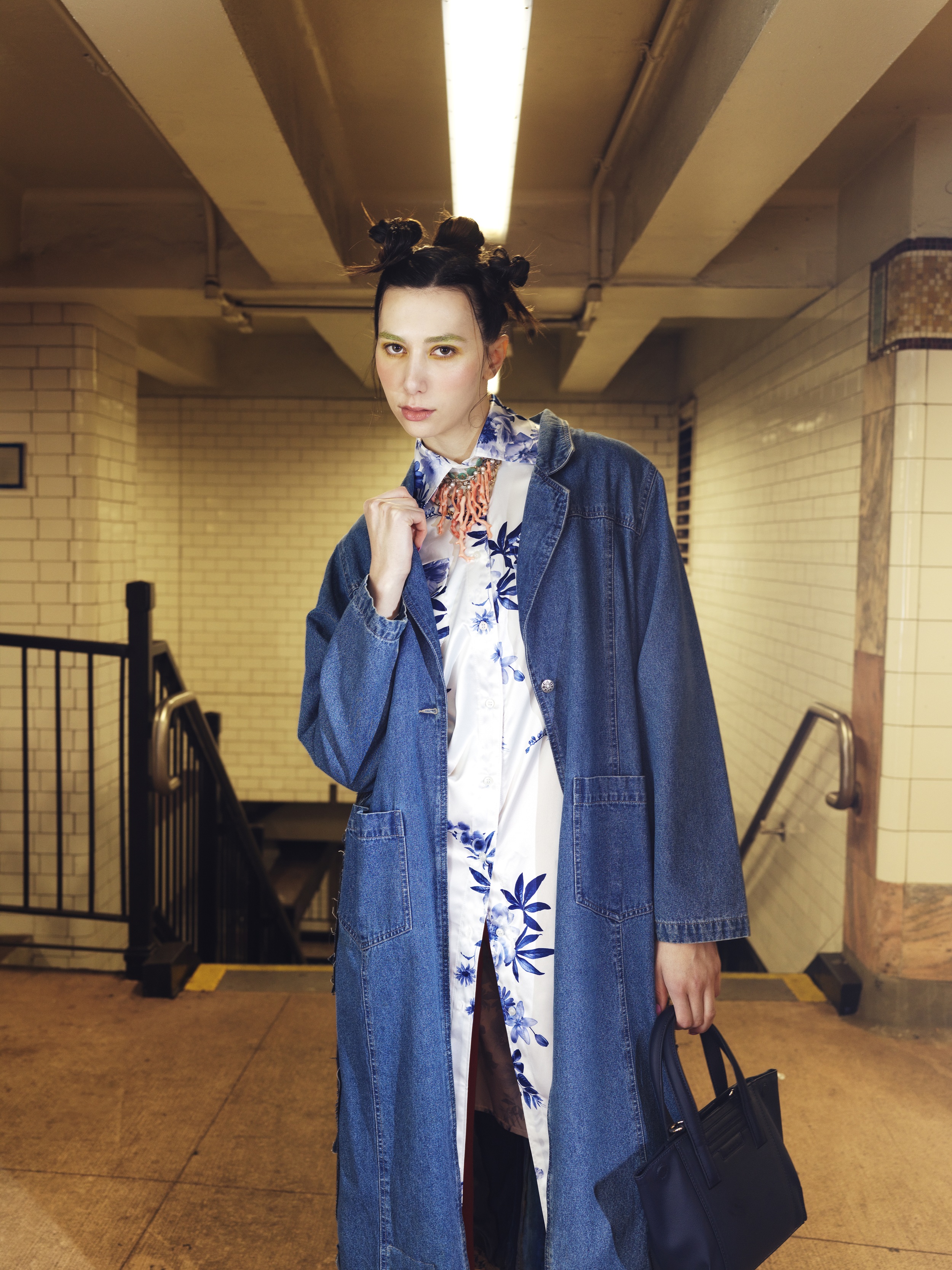 Plašč: LEAH STEINER (@leahsteiner.art), srajca: CARI CAPRI (@shopcaricapri), ogrlica: J.FORKS DESIGNS (@jforksdesigns), torbica: AGAVĒ (@agave.world)