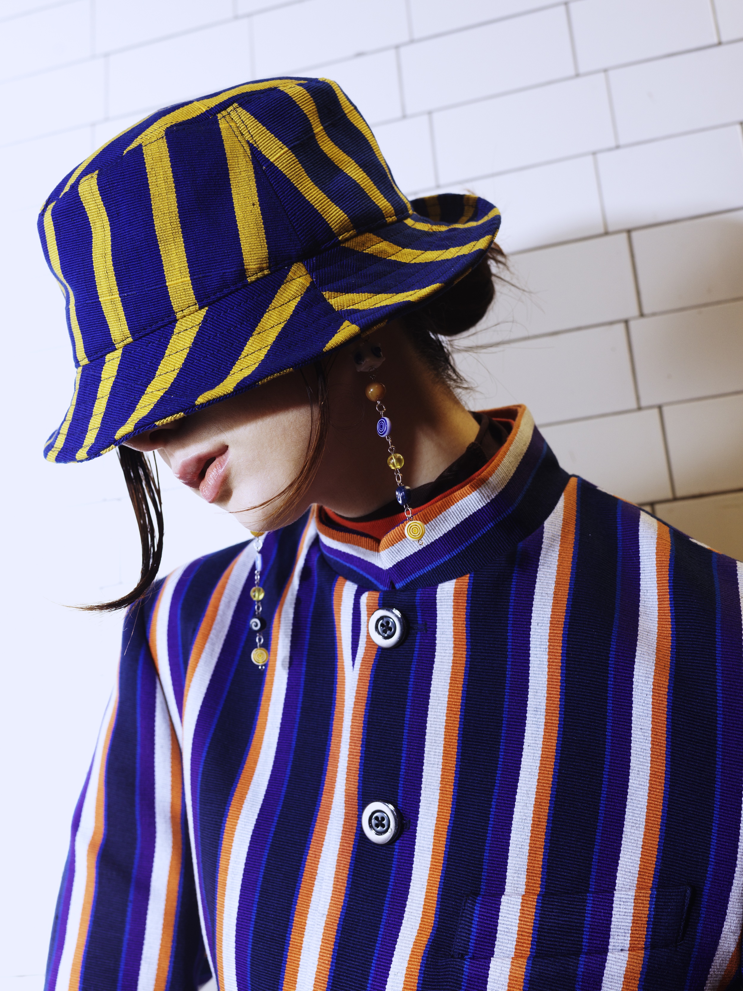 Plašč in klobuk: FEFETI (@fefetidesigns), uhani: STAY MAD DECENT (@StayMadDecent)