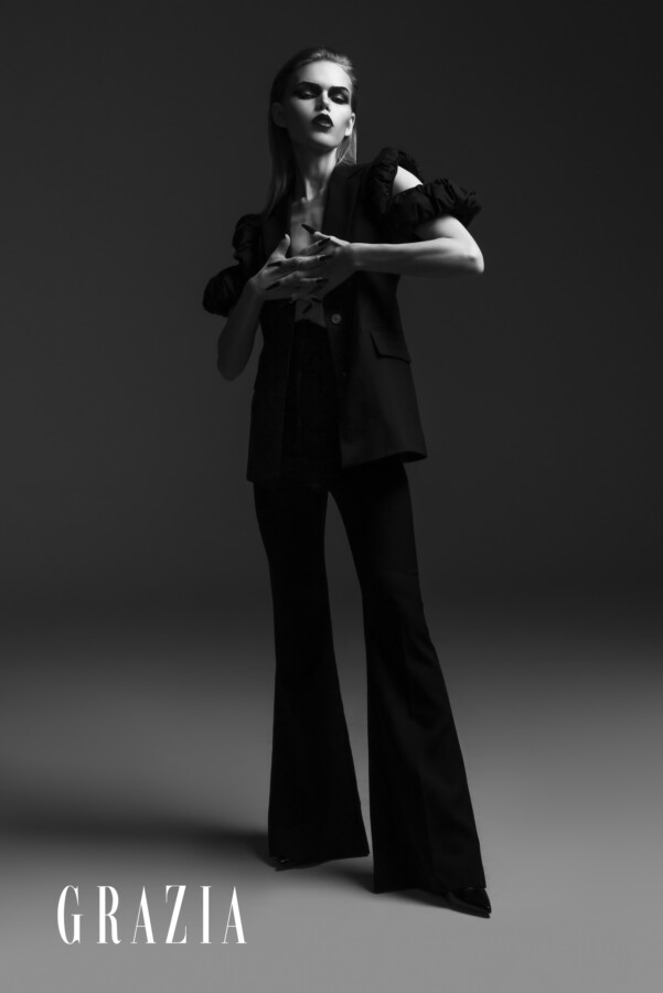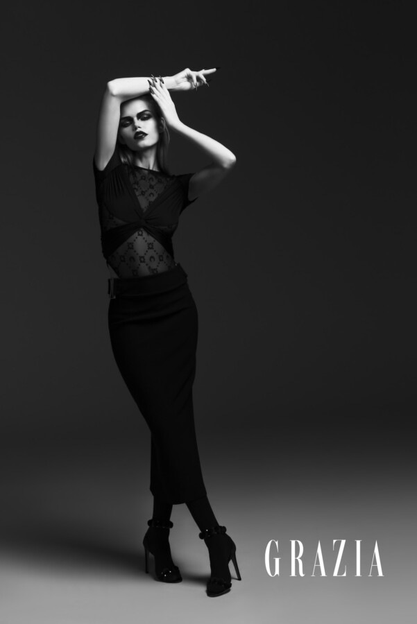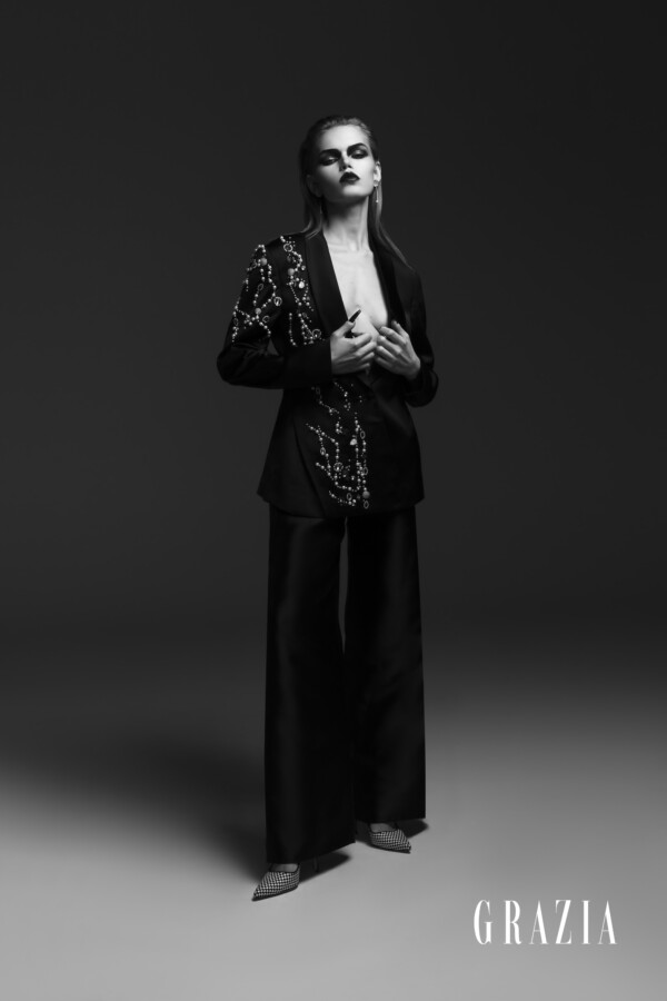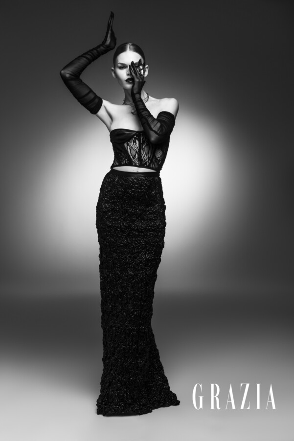 GRAZIA sat down with her to talk about her fashion philosophy, the beauty that comes from within, and the deeper meaning of life. “I want women to be aware that breast cancer can affect anyone, at any age. During my experience, I felt deeply ashamed and alone — and no one should ever have to feel that way,” she shared candidly, opening up about the illness that changed her outlook on life.