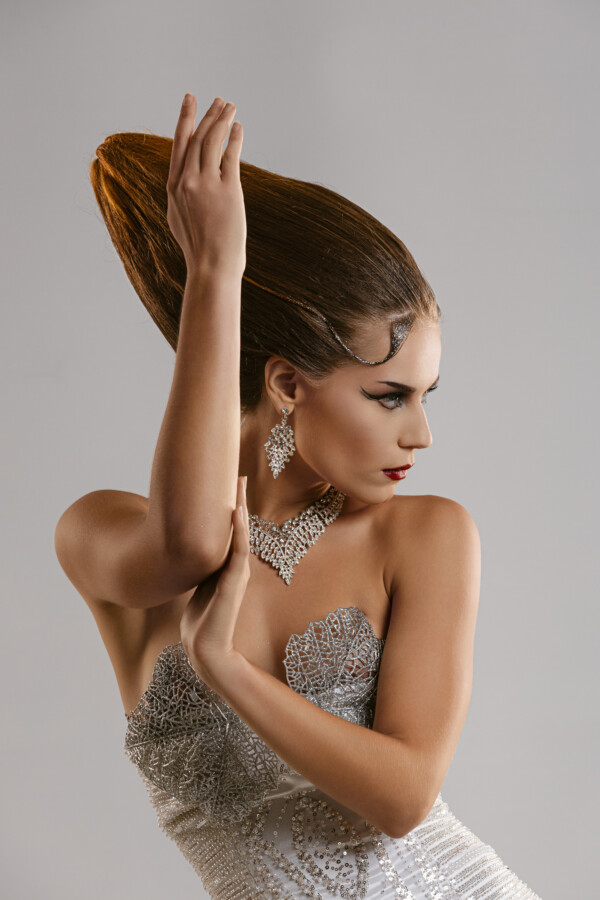 Pri komaj 21. letih Elena Lamberti ustvarja lastne modne kose in oblikuje prepoznaven vizualni jezik, kjer se disciplina srečuje z nežno senzualnostjo. Njen pristop temelji na občutku za formo, ravnotežju in notranjemu doživljanju podobe. Fotografije, ki jih razkrivamo, temeljijo na tišini forme in preciznosti detajla. Estetika subtilno odmeva duh zgodnjih let v novem tisočletju in visoke mode, kjer v ospredju ni zgolj oblačilo, temveč stanje, ki ga to ustvarja. Podaljšane silhuete, gladko urejeni lasje in hladen sijaj nakita ustvarjajo prisotnost, ki deluje skoraj brezčasno. Ikonično.