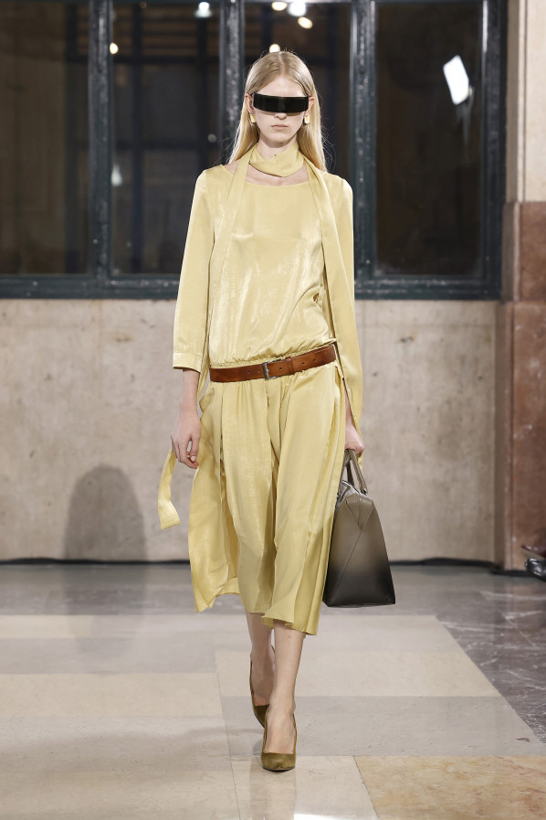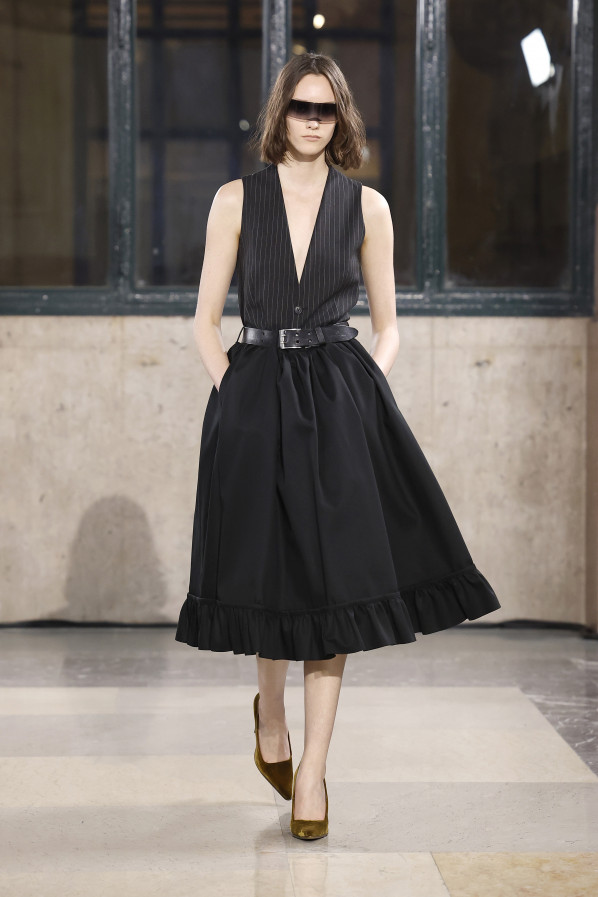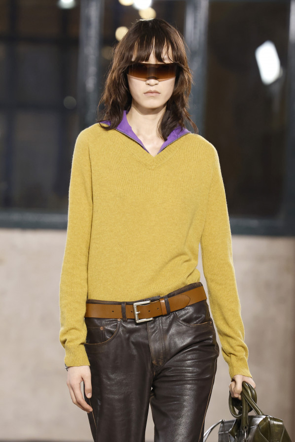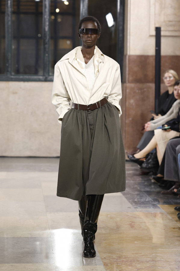 Karirasta srajca v kombinaciji s krilom je nepričakovana kombinacija, ki deluje sodobno, moderno in šik. Suknjič, nošen čez dolge hlače, je spodnje perilo preoblikoval v vidno oblačilo. Pulover se je pojavil samostojno z hlačnimi nogavicami, kar je odpravilo plastenje in razkrilo silhueto ter proporce oblačila. Sklici na osemdeseta leta so se pojavili skozi silhueto in proporce, medtem ko so konjeniški detajli vnesli subtilne asociacije z uporabnostjo in disciplino. Vsak element je deloval kot del sistema, kjer je redukcija izostrila obris, izpostavljenost pa je razkrila proces.