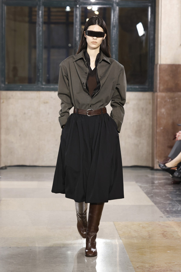 Vse manekenke so si oči skrile za sončnimi očali MM6 Maison Margiela, ki so zdaj na voljo v širokem spektru odtenkov. Poudarila so anonimnost, hkrati pa z barvo vnašala subtilno individualnost. Ta gesta je odražala osrednji pristop kolekcije, kjer so se znana oblačila na prvi pogled zdela nespremenjena, a so hkrati razkrivala spremembe v proporcih, konstrukciji ali kontekstu. Osrednji kosi v novi kolekciji so kariraste srajce, kavbojke, suknjiči, A-krila, celo trenirke, športni smučarski puloverji in flis kosi z zadrgo, od obutve pa so nam v oči padli visoki škornji in salonarji.