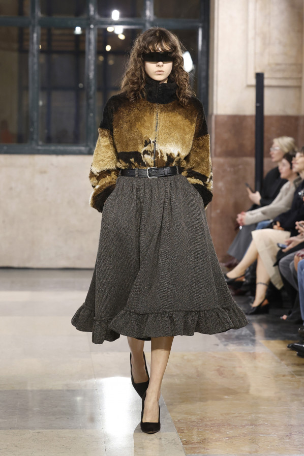 Skozi celotno kolekcijo smo večkrat videli, da se kombinacije ponavljajo. Enaki vzorci na puloverjih in krilih. Opazili smo tudi podobne silhuete in enake proprocialne kreacije na več manekenkah – krila z ravnim krojem v paru s športnim puloverjem iz jerseya, dolgo plapolajoče krilo v paru z zimskim puloverjem in visokim ovratnikom ter jakno s krznenim detajlom so glavna nota te kolekcije. Modno revijo so zaključili šik videzi z A-krili v kombinaciji s športnimi puloverjem, karirasto srajco, suknjičem, brezrokavnikom in celo volnenim puloverjem z visooookim ovratnikom. Oglejte si nekaj videzov spodaj.