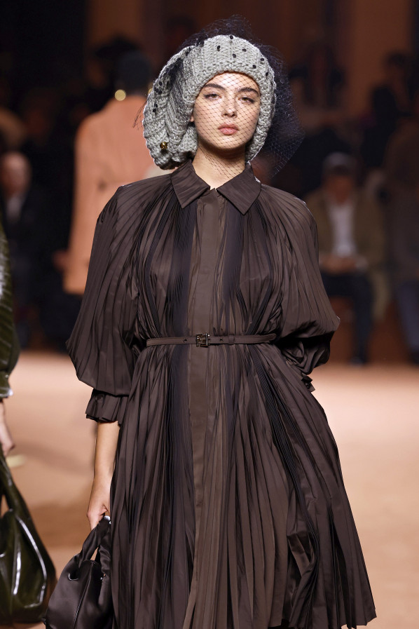 Khaite na drugi strani stavi na newyorški sproščen mestni utrip in kot ‘it’ modni dodatek sezone imenuje čepice. V kombinaciji z jakno in krilom v gepard vzorcu boste to zimo prava diva. Urbano, šik in v koraku z modo! Tudi Fendi se ni odločil za klasičen klobuk, vendar unikatno pleteno kapo s podpisom ženske zapeljivosti (beri čipke!), ki je privabilo naš pogled.