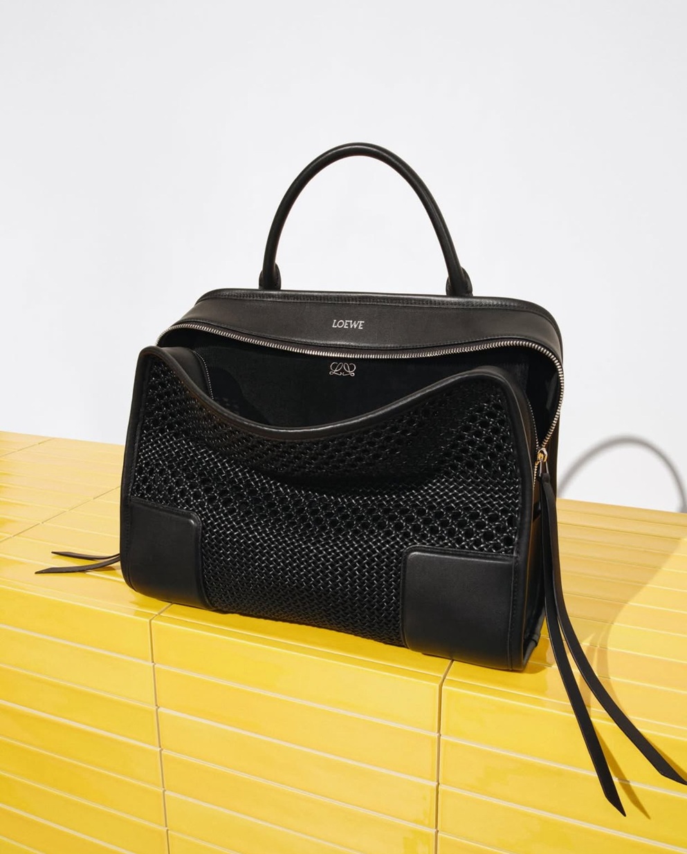 Jack McCollough in Lazaro Hernandez sta prvič v zgodovini znamke razbila anagram modne hiše. Logotip, ki izvira iz leta 1970, je delo Vicenteja Vele. Gre za štiri zrcaljene črke L, povezane v popoln obrtni vozel, navdihnjen s španskimi usnjarskimi ateljeji — je veljal za nedotakljivega. Celovit, zaprt, skoraj svet. Zdaj pa Loewe dovoli, da obstaja le njegova polovica, fragment, ki je povzdignjen v glavni nosilni motiv. Je to še Loewe? Smo priča popolni vizualni prenovi modne znamke in novemu obdobju za znamko španskih korenin, Loewe?
