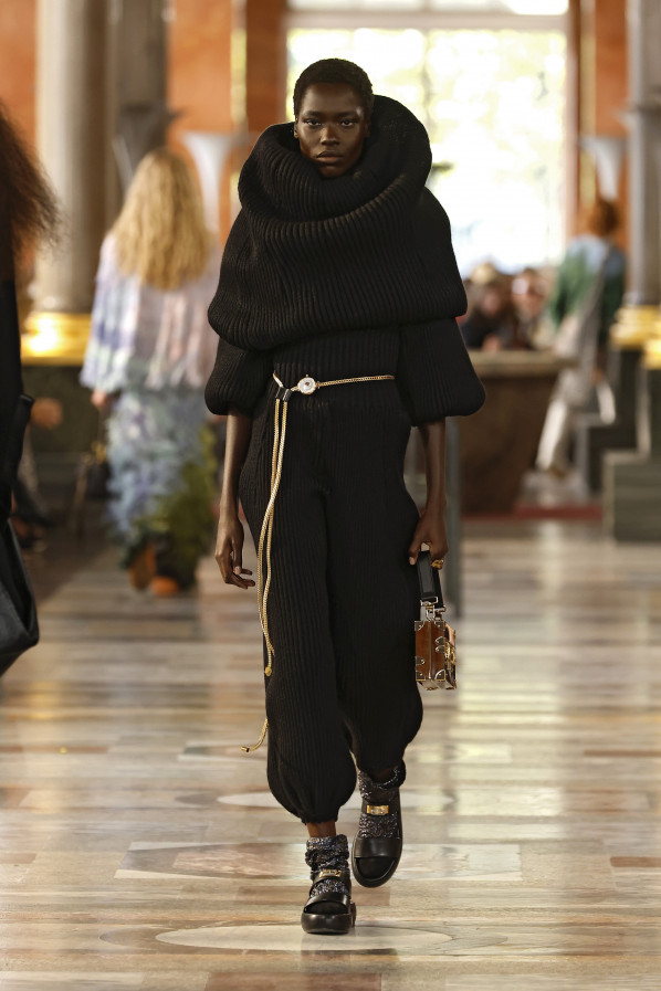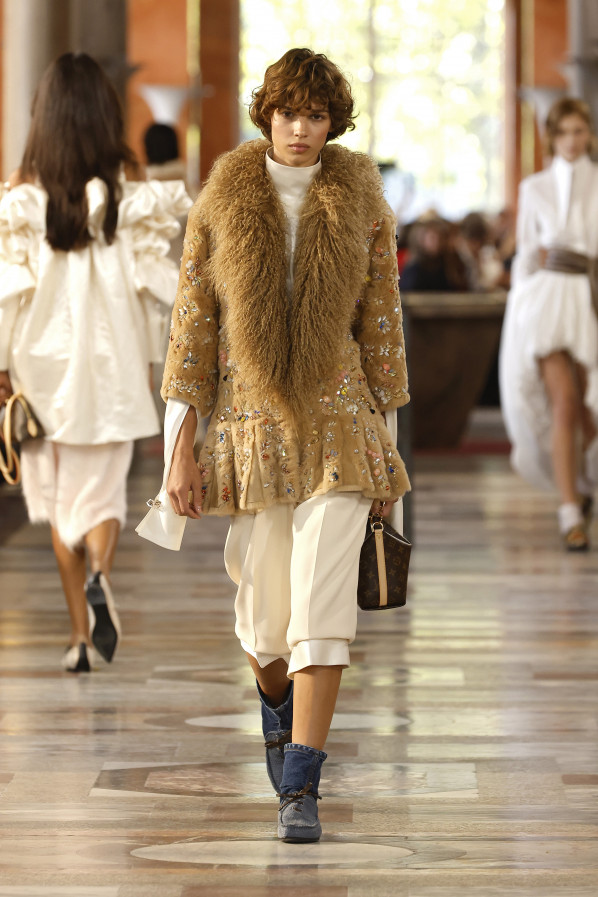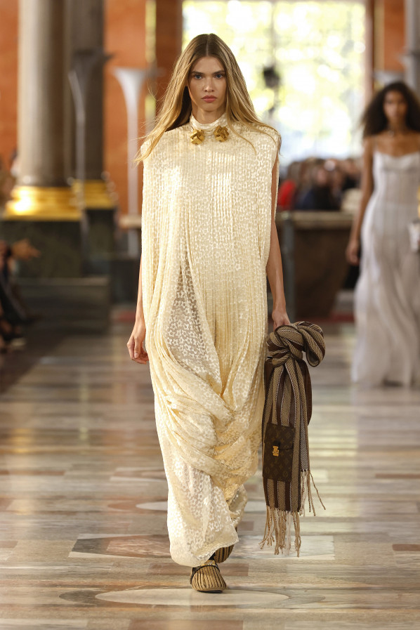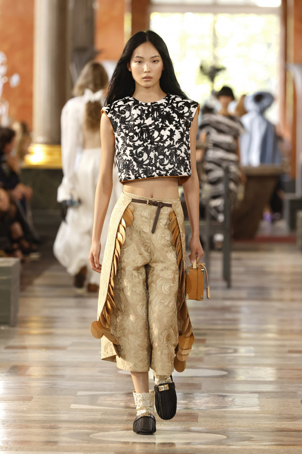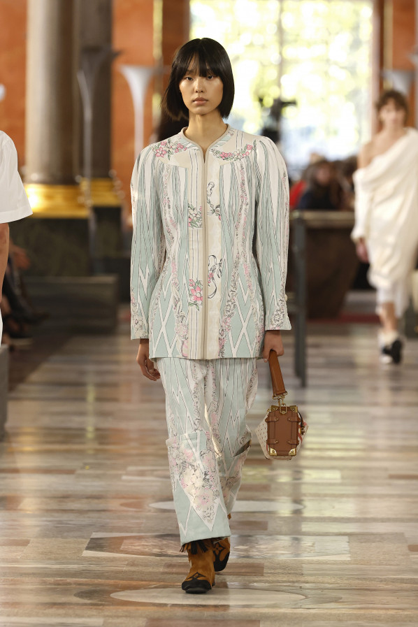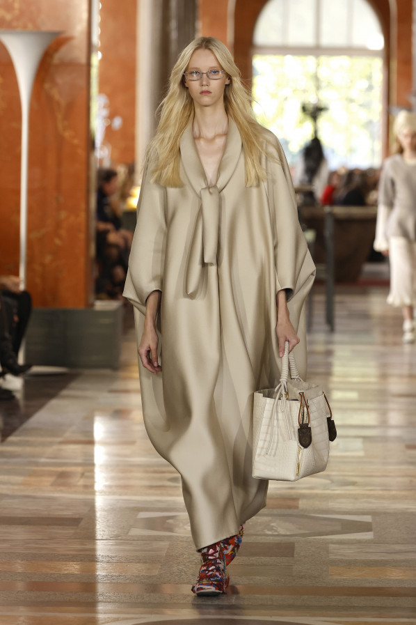 Umetniški direktor ženske mode Nicolas Ghesquière, ki je danes eden najdlje delujočih kreativnih direktorjev v luksuzni modi v času, ko druge hiše menjajo vodilne kreativce, kot sezonski trendi, je Ghesquière modno hišo vodil z neomajnim prepričanjem v moč pripovednega oblačenja. Od srečevanja srednjeveškega oklepa in futurizma križarjenja v Avignonu do nomadske čutnosti prejšnjih sezon so njegove Louis Vuitton linije vedno študije gibanja skozi umetnost potovanja. Toda to sezono gibanje ni bilo geografsko niti potovanje ni bilo dobesedno – bilo je notranje, proti svobodi, zasebnosti in spreminjajočim se mejam identitete.