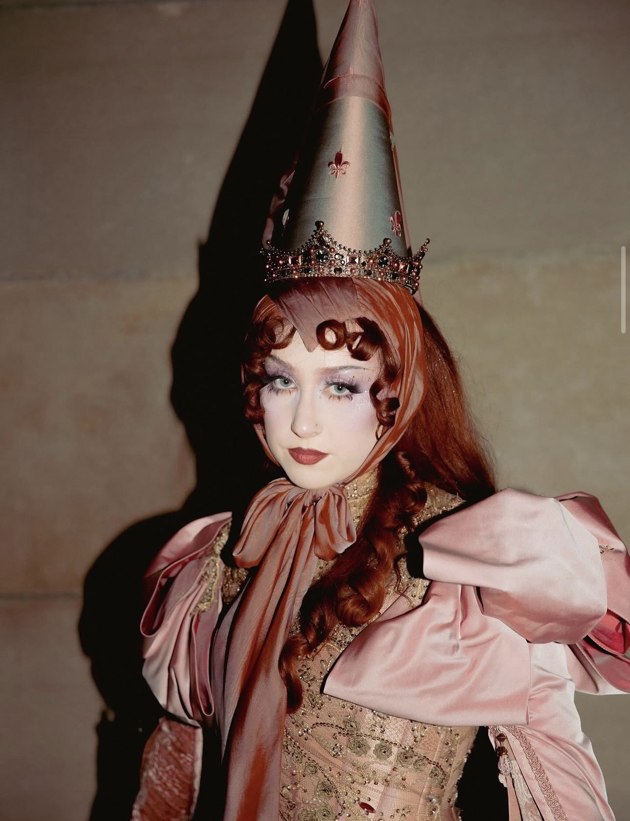 Če je tvoj Halloween bolj glam kot groza, je Chappell Roan popolna izbira. Njen videz združuje vintage drag estetiko, bleščice in kamp dekadenco. Mislimo na vijolične perje, metalne korzete in ličila, ki kričijo main character energy.