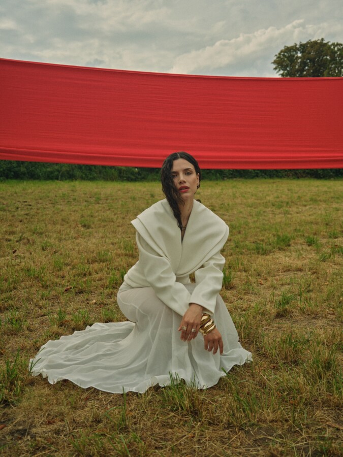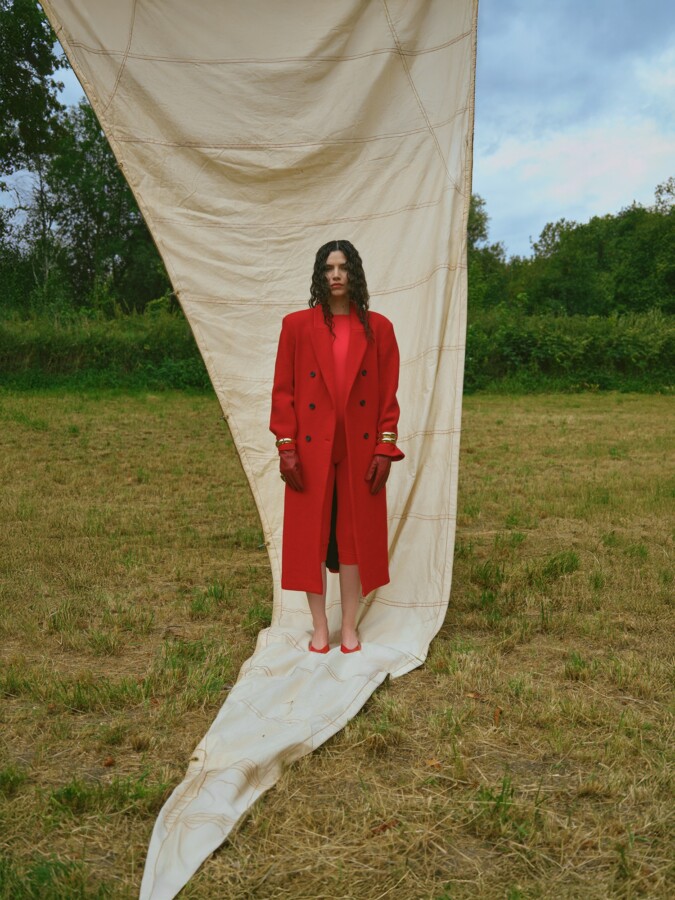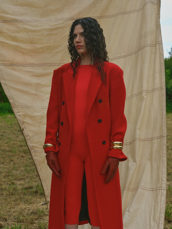 Plašč: Max Mara, hlače: Jacquemus, salonarji: Dries van Noten