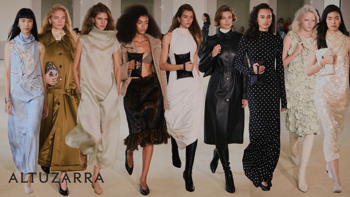 Joseph Altuzarra je svojo kolekcijo zasnoval okoli koncepta “drugačnih časovnih kapsul”, kjer je združil romantične silhuete z modernimi eksperimenti. Perlasti detajli in cvetlični izrezi so dodali mehak, skoraj gozdni pridih, medtem ko so nekateri kosi vsebovali krzneni rob, ki pa ni povsem usklajen z ostalimi elementi kolekcije. Kljub tem kontrastom je kolekcija izžarevala prefinjenost in sodobno eleganco.