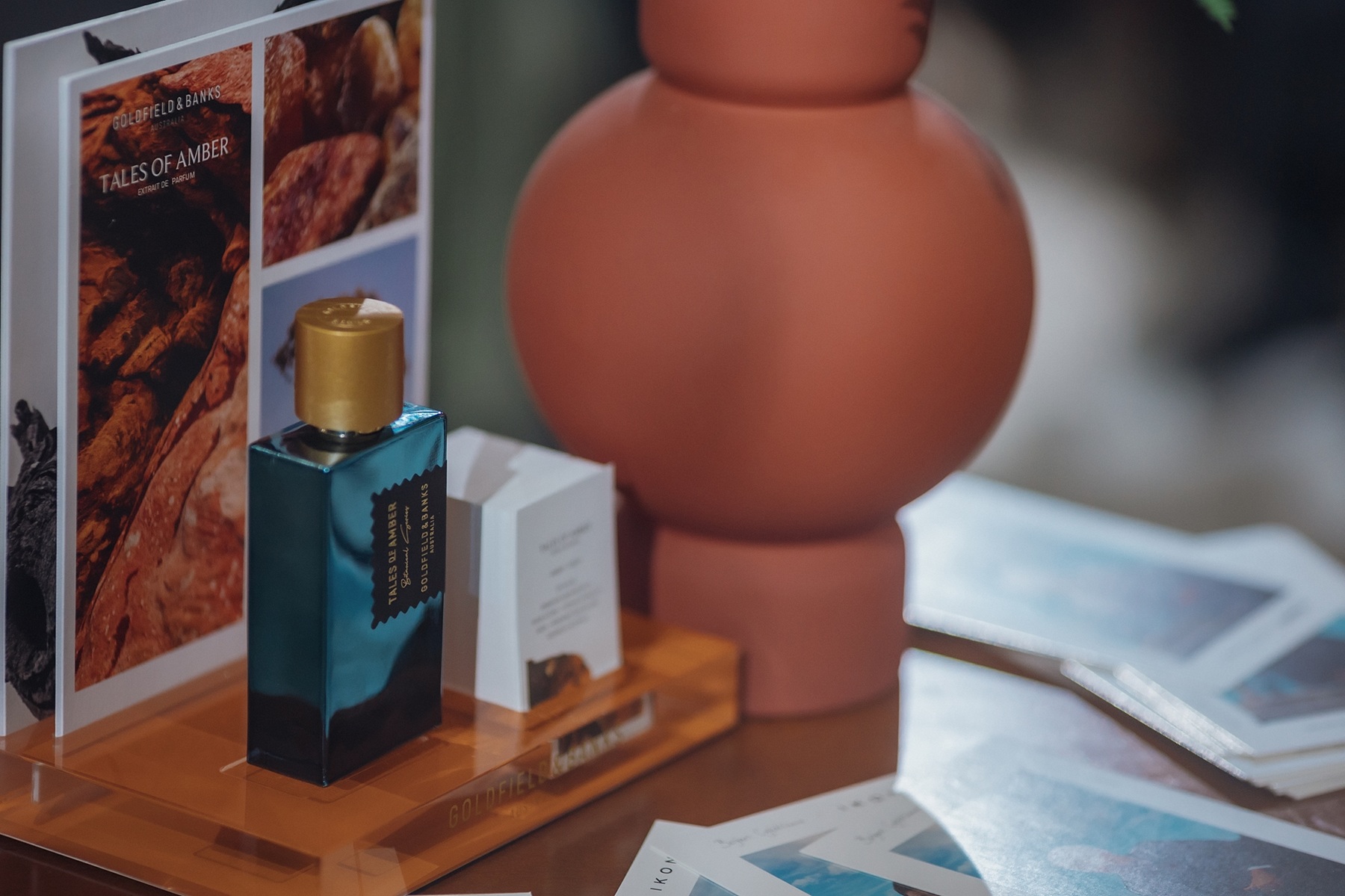 Znamko Goldfield & Banks je leta 2016 v Avstraliji ustanovil Dimitri Weber. Dišave so navdihnjene z različnimi kraji in pokrajinami po Avstraliji, poudarek pa je na uporabi avstralskih botaničnih in avtohtonih sestavin. “Za novo dišavo Tales of Amber smo se nekako premaknili onkraj Avstralije in zdaj potujemo na naš sosednji otok Novo Zelandijo. Želeli smo počastiti čisti novozelandski sivi jantar (ambergris). Vonj dišave je zelo poseben, saj gre za najčistejšo jantarjevo noto. Posebnost tega parfuma je, da mu mehkobo dajejo note irisa, svežino pa dopolnjuje kanček cimeta. Dišavo bi opisala kot zelo karizmatično in elegantno. Zdaj, ko so dnevi nekoliko hladnejši in prihaja zima, me ta dišava spominja na odejo, s katero se pokrijemo, ko nas zebe. Prepričana sem, da je to popoln parfum za zimski čas,” je povedala Brunilda Qushku, ambasadorka parfumske znamke Goldfield & Banks.