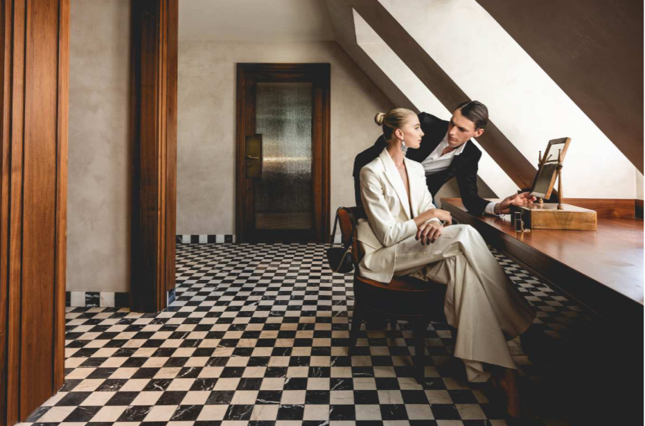 Šik in samozavestno prefinjena serija, ki piše nova pravila večerne elegance. Ona v ostrih belih linijah na novo definira power dressing – samozavestna, čutna, neustavljiva. On v klasični črni obleki prinaša kanček brezčasne sofisticiranosti. Skupaj stopata skozi sijoče interierje, žametne salone in vrtove, ki jih objema mesečina – zgodba, v kateri moda postane hkrati oklep in zapeljevanje.
