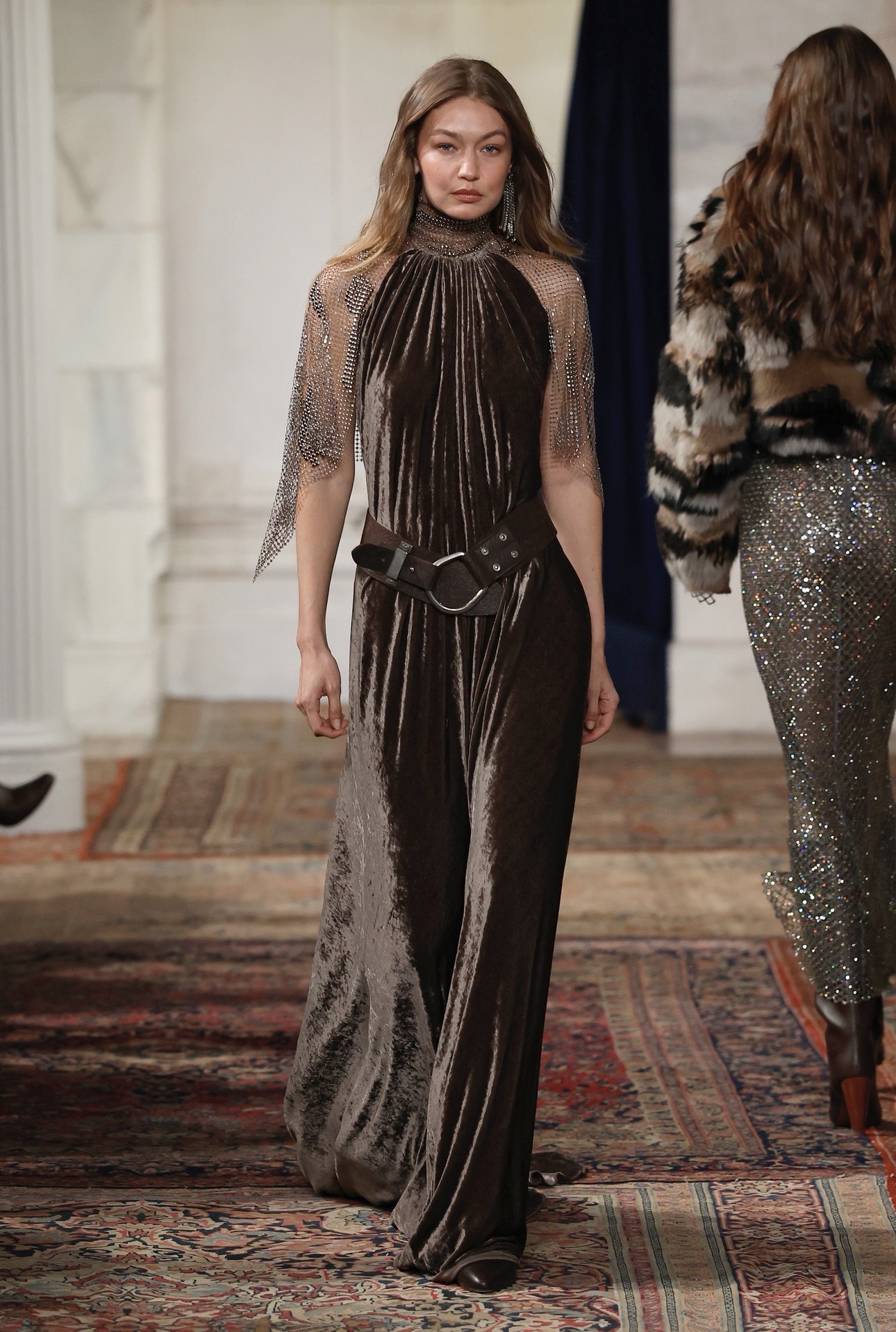 V zapiskih ob reviji je Lauren svojo muzo opisal kot žensko z »uporniškim duhom«, ki se oblači po svoje in z zaupanjem vase. Na pisti se je to pokazalo skozi igro kontrastov, verižni detajli pod tvidastimi suknjiči, usnjene rokavice ob nežnih pleteninah, srebrne broške in pasovi, ki so poudarjali razkošne volnene tkanine. Kolekcija je spominjala na moderno Ivano Orleansko, a brez pretirane teatralnosti.