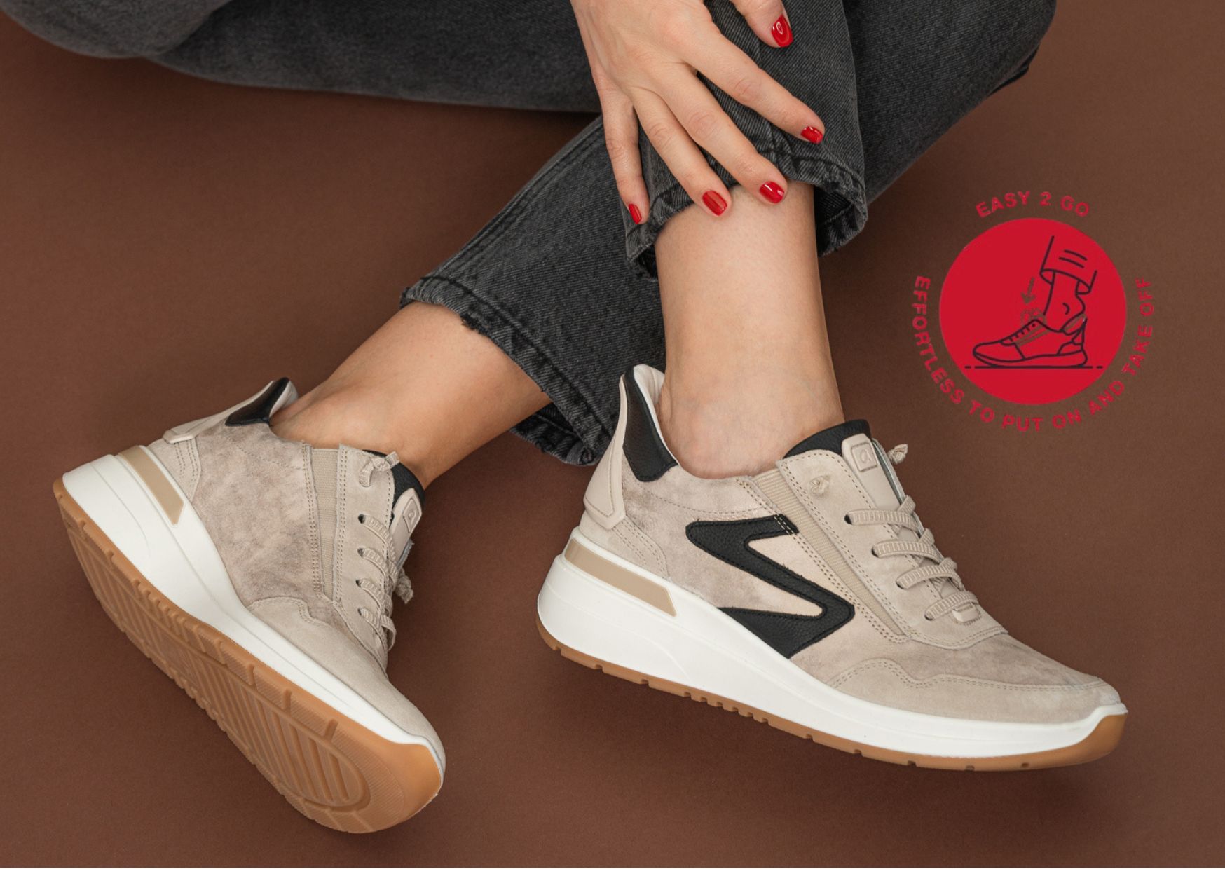 Posebnost modela Garda je inovativna funkcija easy2go, ki omogoča izjemno enostavno obuvanje. Zaradi elastičnih trakov in stabilnega, čvrstega petnega dela čevlje obujemo brez sklanjanja in brez uporabe rok. Vanje preprosto zdrsnemo in že smo na poti. Popolna rešitev za hiter tempo vsakdana, jutranje opravke ali trenutke, ko si želimo več udobja.
