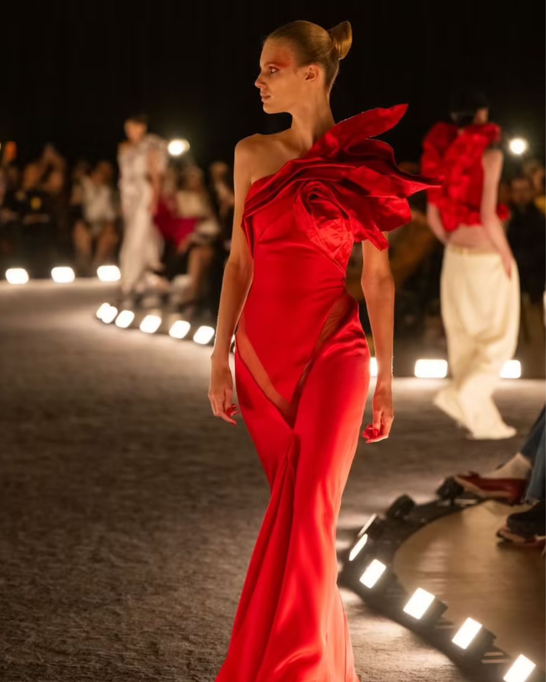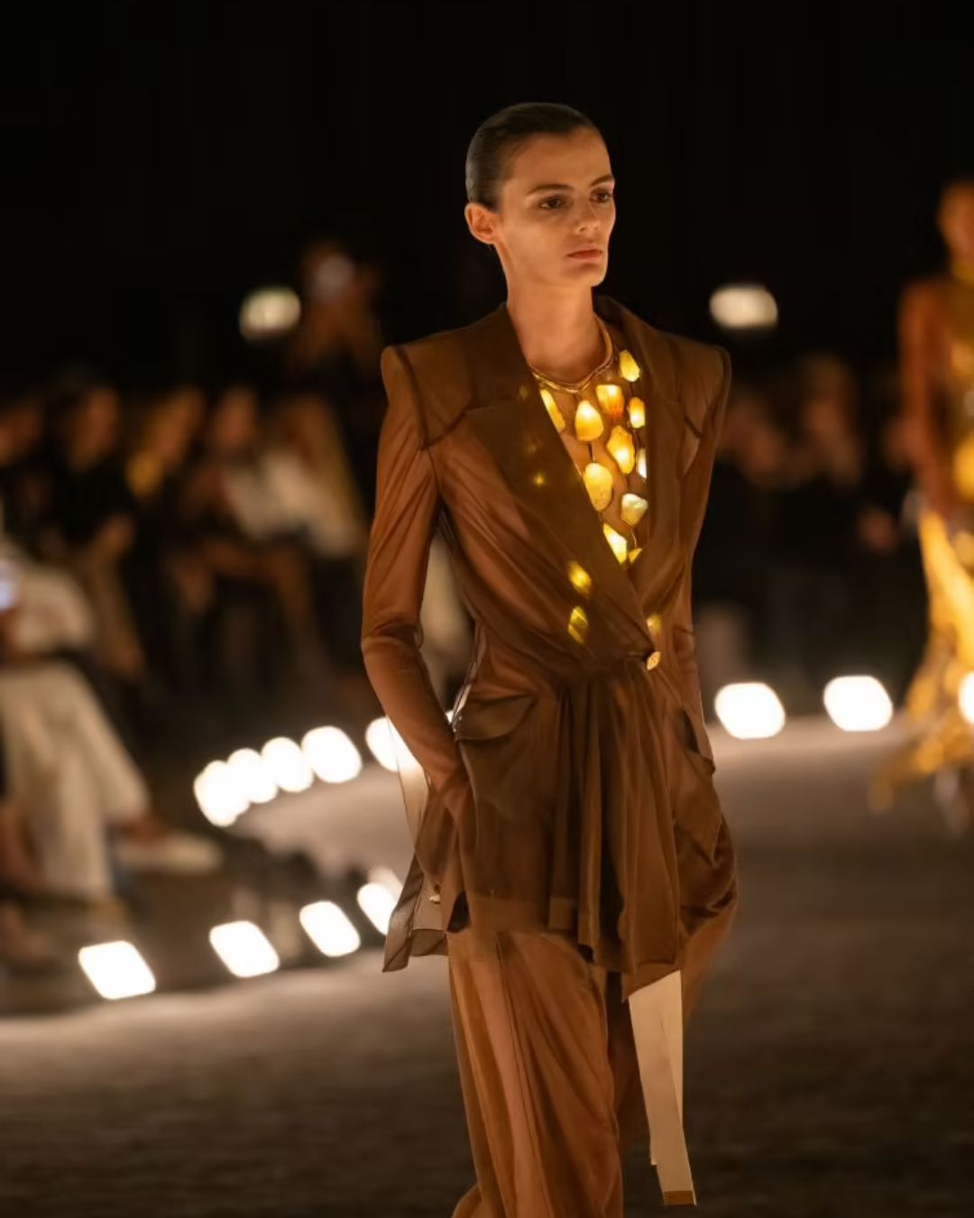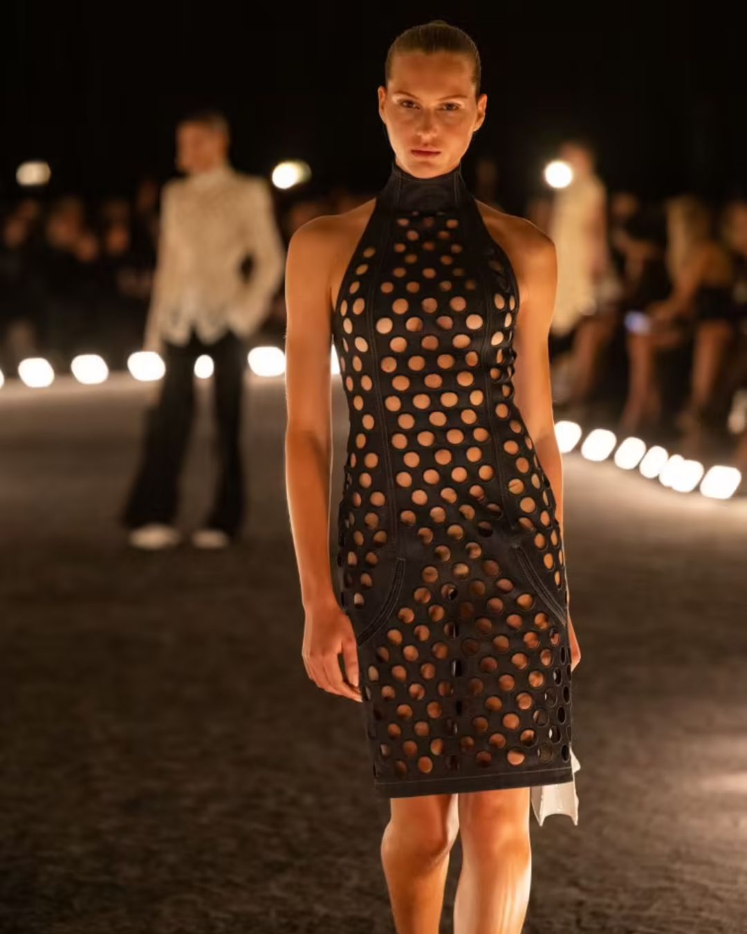 Na pariškem tednu mode je Schiaparelli za pomlad/poletje 2026 predstavil kolekcijo, ki se igra z nasprotji: ostrim in mehkim, temnim in svetlim, vsakdanjim in fantazijskim. Daniel Roseberry, umetniški direktor hiše, je kolekcijo poimenoval “Dancer in the Dark”, kar lepo povzame ravnovesje med dramatičnostjo in subtilnostjo, ki prežema celoten šov.