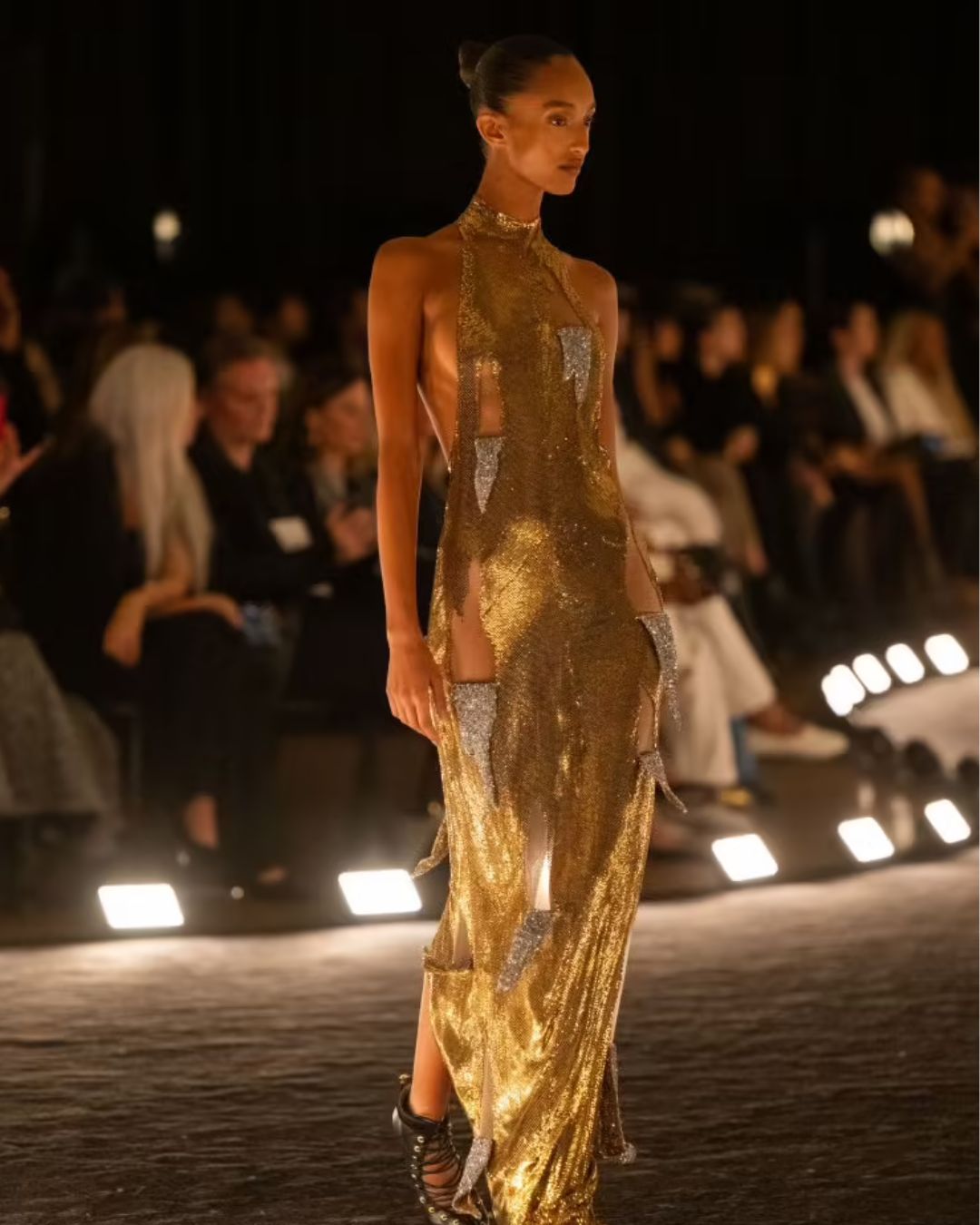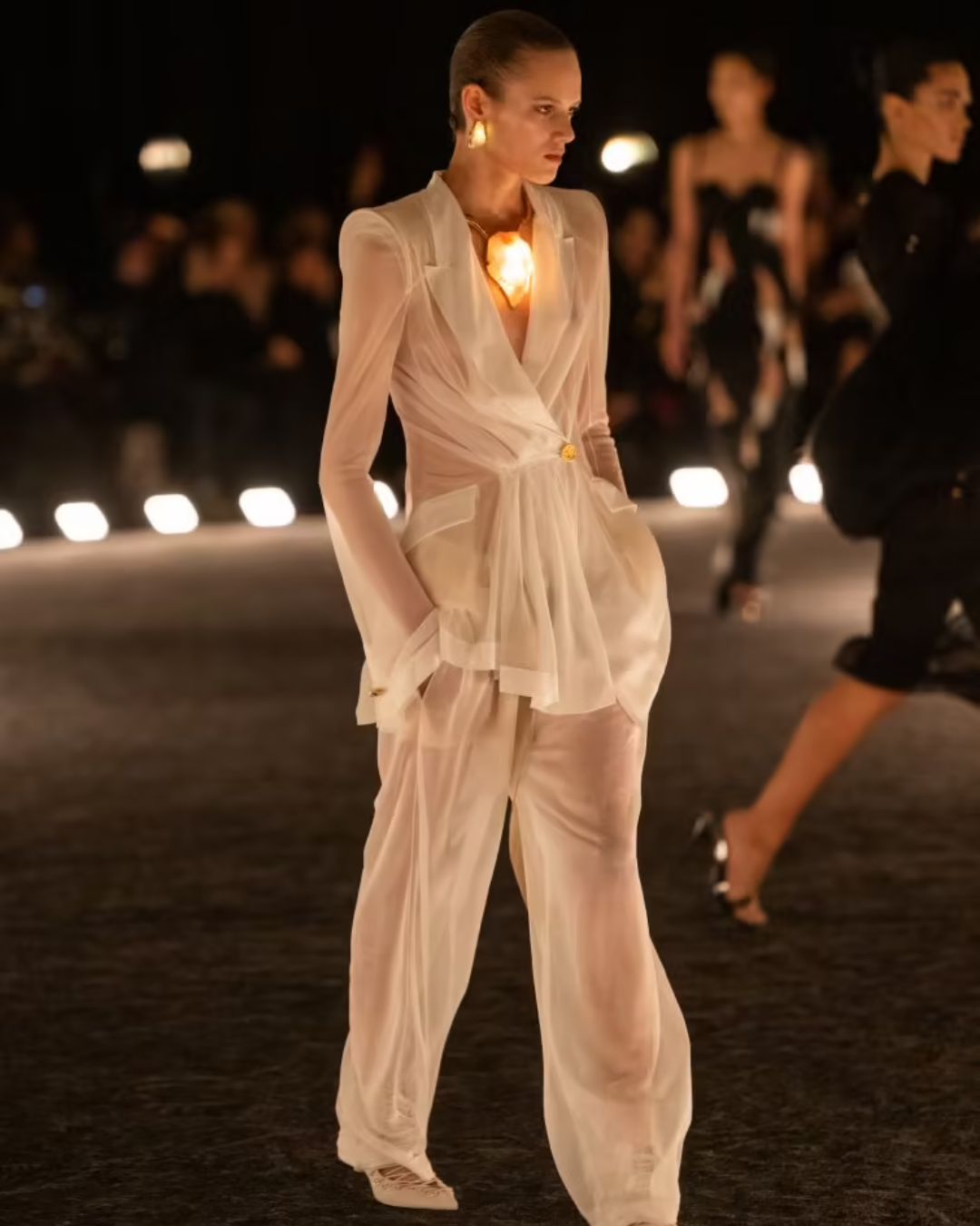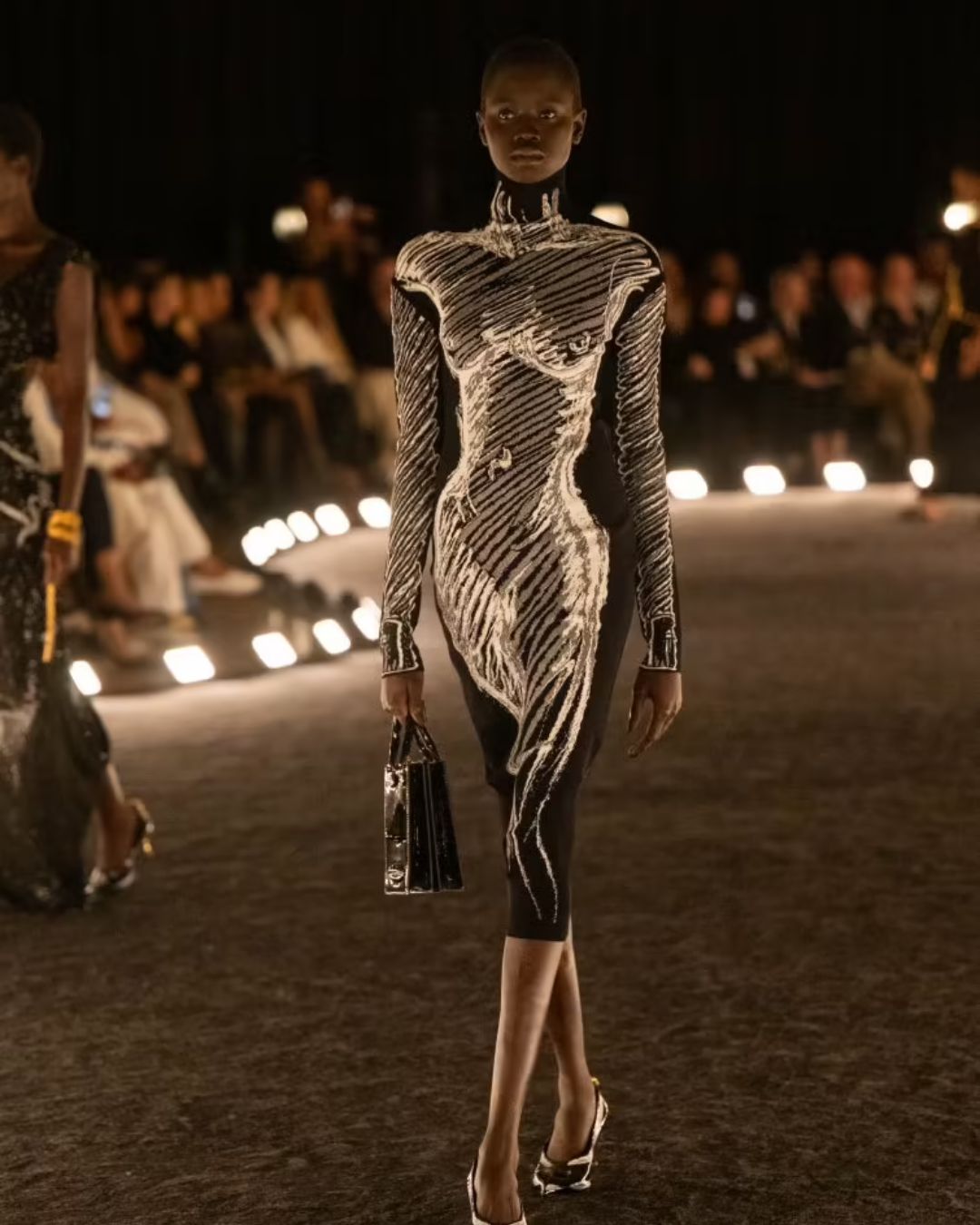 Dogodek je potekal v Centre Pompidou, kar je dodalo sodoben, skoraj futurističen okvir. Na pisti je vladal tudi močan trend “naked dress” – prosojne obleke, ki so razkrivale telo, a hkrati ostajale sofisticirane. Med najbolj odmevnimi obrazi sta bili Kendall Jenner in Alex Consani, ki sta nosili izstopajoče kreacije in pritegnili pozornost medijev.