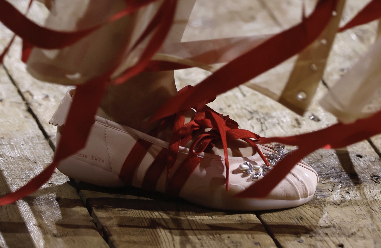Na prvi pogled je kolekcija delovala kot Rochin odgovor na industrijsko fascinacijo z elitnim športom in naraščajoči »sportif« trend. A podrobnosti so povedale več. Na bow-okrašene superge so bile všite tri prepoznavne črte, na kosih pa se je pojavljal logotip Simone Rocha x Adidas Originals – jasen signal, da ne gre zgolj za estetski navdih, temveč za uradno partnerstvo, ki prihaja v prodajo jeseni 2026.