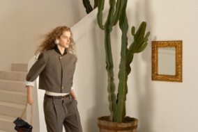 Navdih za komplet topa in kratkih hlač je bila nova oblika razporeditve fotografskih leč, ki so ujete v enakokraki trikotnik. S postavitvijo spominjajo na tipko ‘play’ in prav to je Matic povezal v zanimiv vzorec. “Od nekdaj me navdihuje tehnologija v modi. Cenim krojaško obrt in natančnost, to imam zapisano v genih, od vsakega izdelka pričakujem tehnično dovršenost. Lasersko izrezovanje je zadnja leta tehnika, ki jo uporabljam za doseganje posebnih učinkov 3D oblikovanja. Postavitev fotografskih leč na telefonu Pura 70 Ultra mi je z modeliranjem omogočila izdelavo zelo izbranega vzorca, ki na rahlo svetlečem blagu, ki sem ga izbral, pričara hkrati bogato, a zelo elegantno postavitev oblačila.” GRAZIA je bila nad sodelovanjem navdušena, še najbolj pa si v čast štejemo vrhunski rezultat v obliki modnih fotografij, ki jih je posnel Tibor Golob. “Obožujem sodobne tehnologije, modo in dodano vrednost z vrhunsko umetniško idejo,” je dejal fotograf na snemanju modne zgodbe in naslovnice za novo poletno številko GRAZIJE (za mini posnetek iz zakulisja kliknite na povezavo: zakulisje Matic Veler x GRAZIA.)