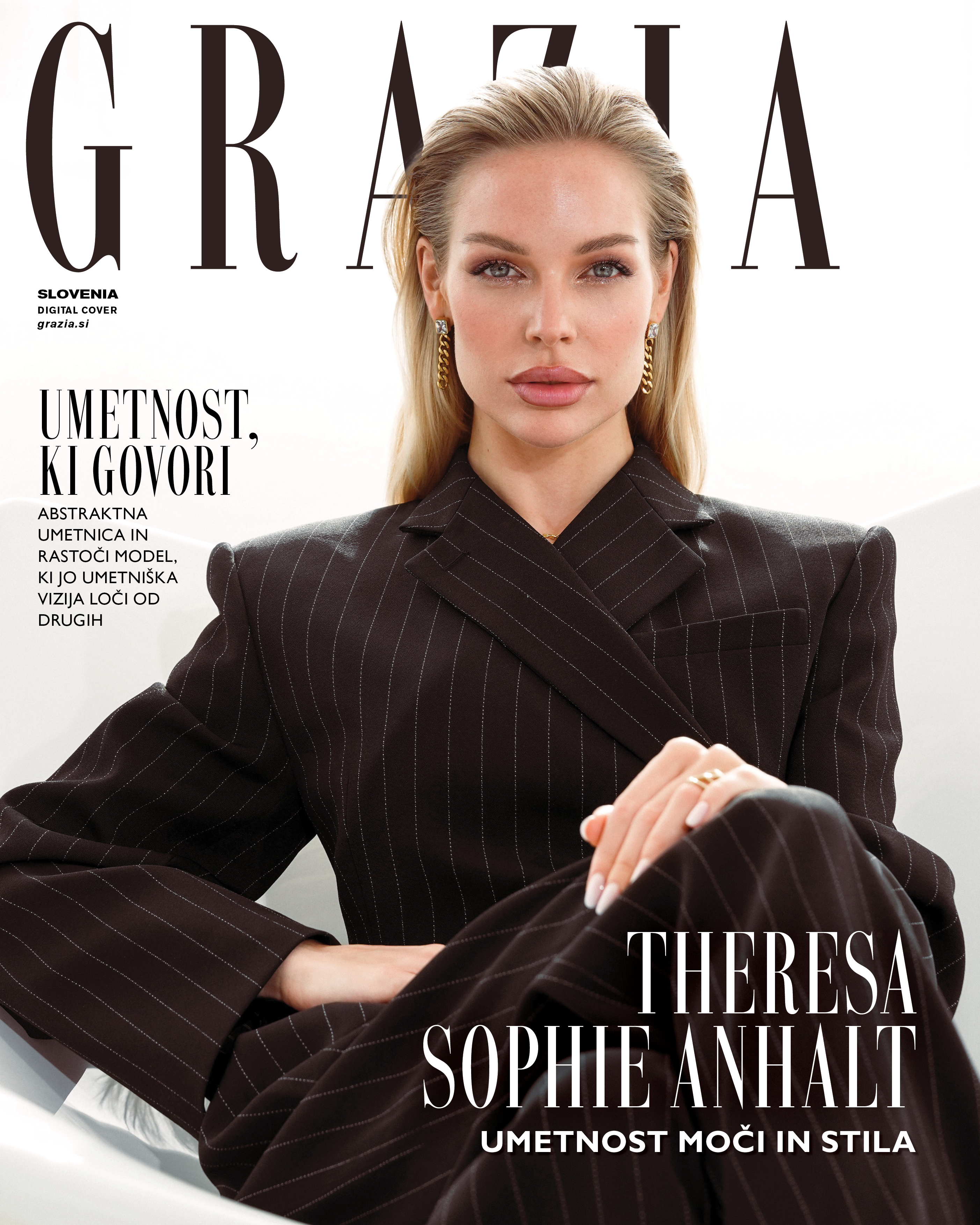 Kjer se umetnost sreča z modo, se rodi edinstvena vrsta magije – takšna, ki jo Theresa Sophie Anhalt oživlja z vsakim platnom in vsakim fotografiranjem. Ni le abstraktna umetnica, temveč tudi rastoči model, katerega izrazna prisotnost in umetniška vizija jo ločita od drugih. Za njo umetnost in moda nista ločena svetova, temveč dve plati iste estetike – medsebojno prepletanje čustev, zgodb in lepote. GRAZIA jo je izbrala za novo zvezdo digitalne naslovnice!