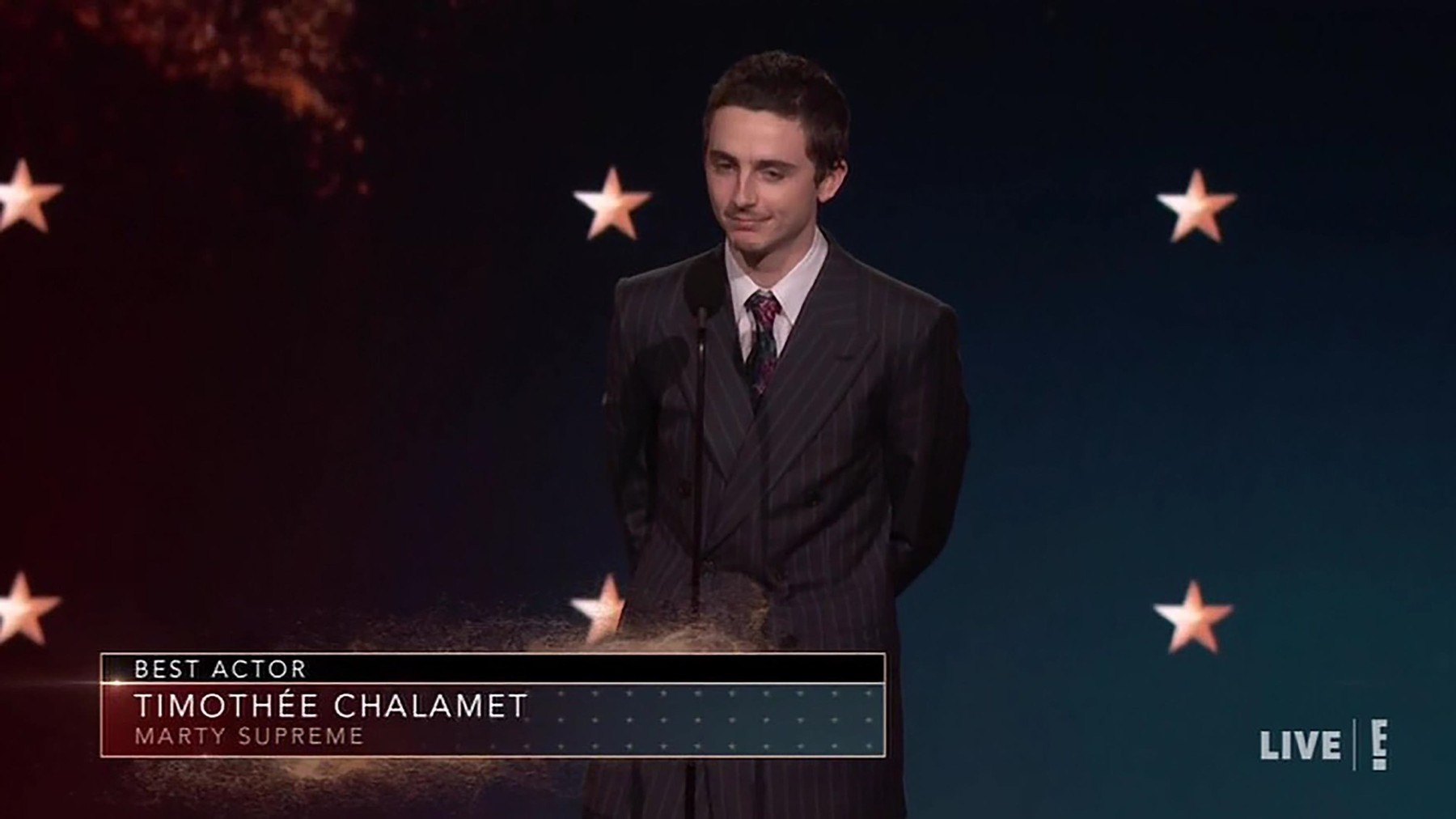 Na 31. podelitvi Critics Choice Awards 2026 je hollywoodski zvezdnik Timothée Chalamet prejel prestižno nagrado Best Actor za svojo izjemno vlogo v filmu Marty Supreme. Ta film, režiran s strani Josh Safdieja, pripoveduje zgodbo o ambicioznem igralcu namiznega tenisa, ki se sooča z izzivi svojega življenja in uresničevanja sanj. Chalametova interpretacija glavnega junaka je povzročila val navdušenja med kritiki in občinstvom, kar mu je prineslo prvo Critics Choice nagrado po več nominacijah v preteklosti.