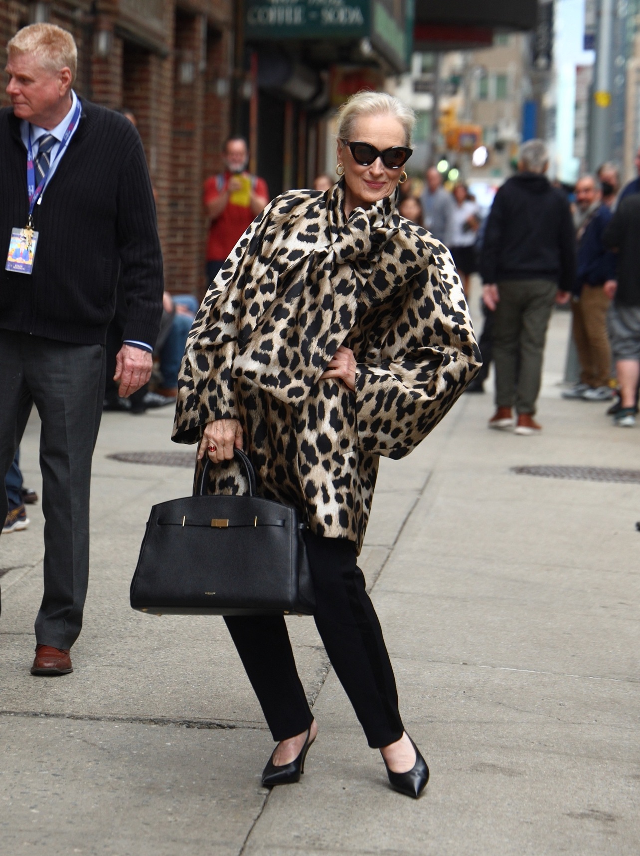 Meryl Streep na poti v goste oddaje Late Show with Stephen Colbert v New Yorku.