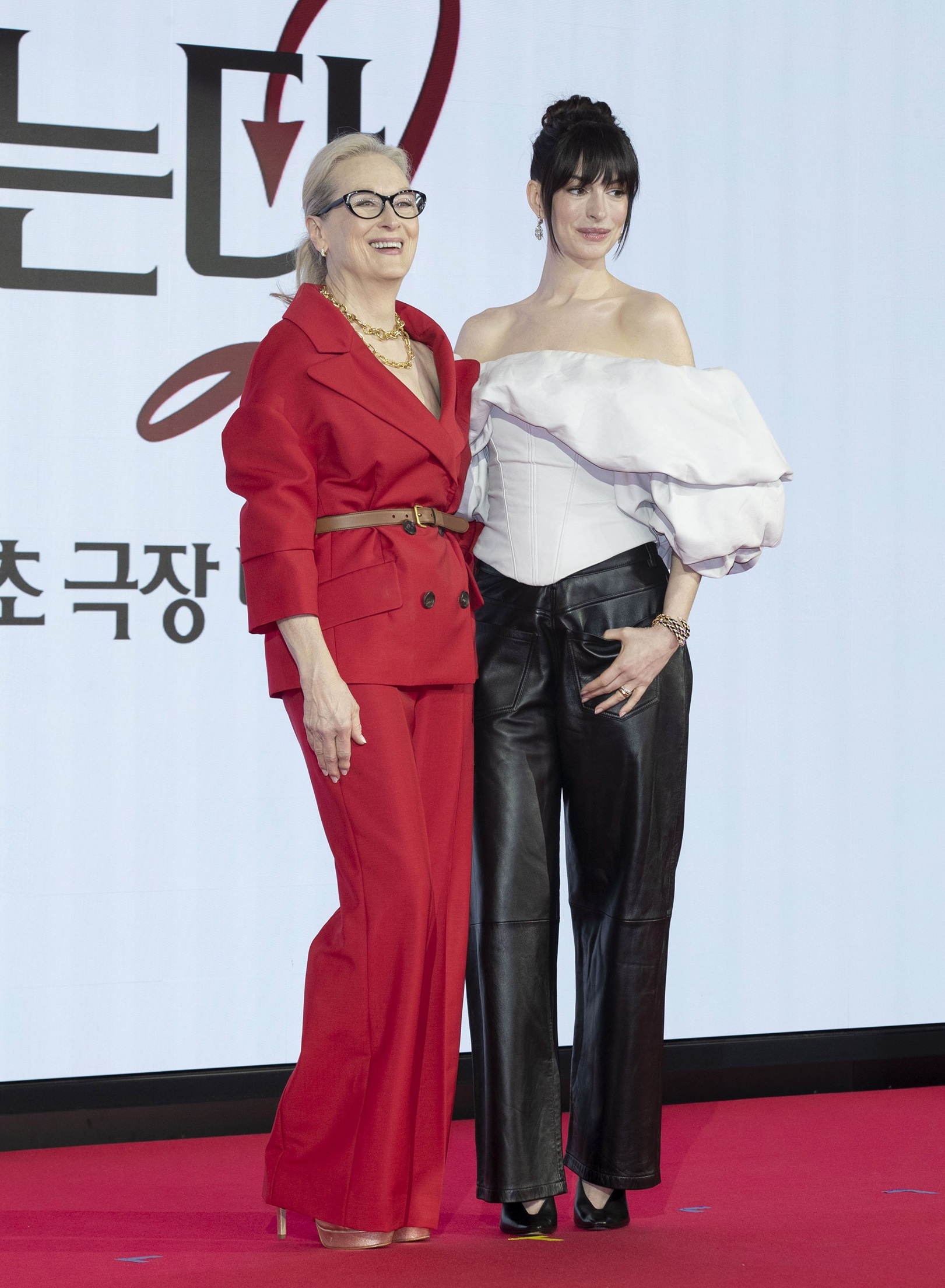 Meryl Streep in Anne Hathaway na novinarski turneji v Seoulu.