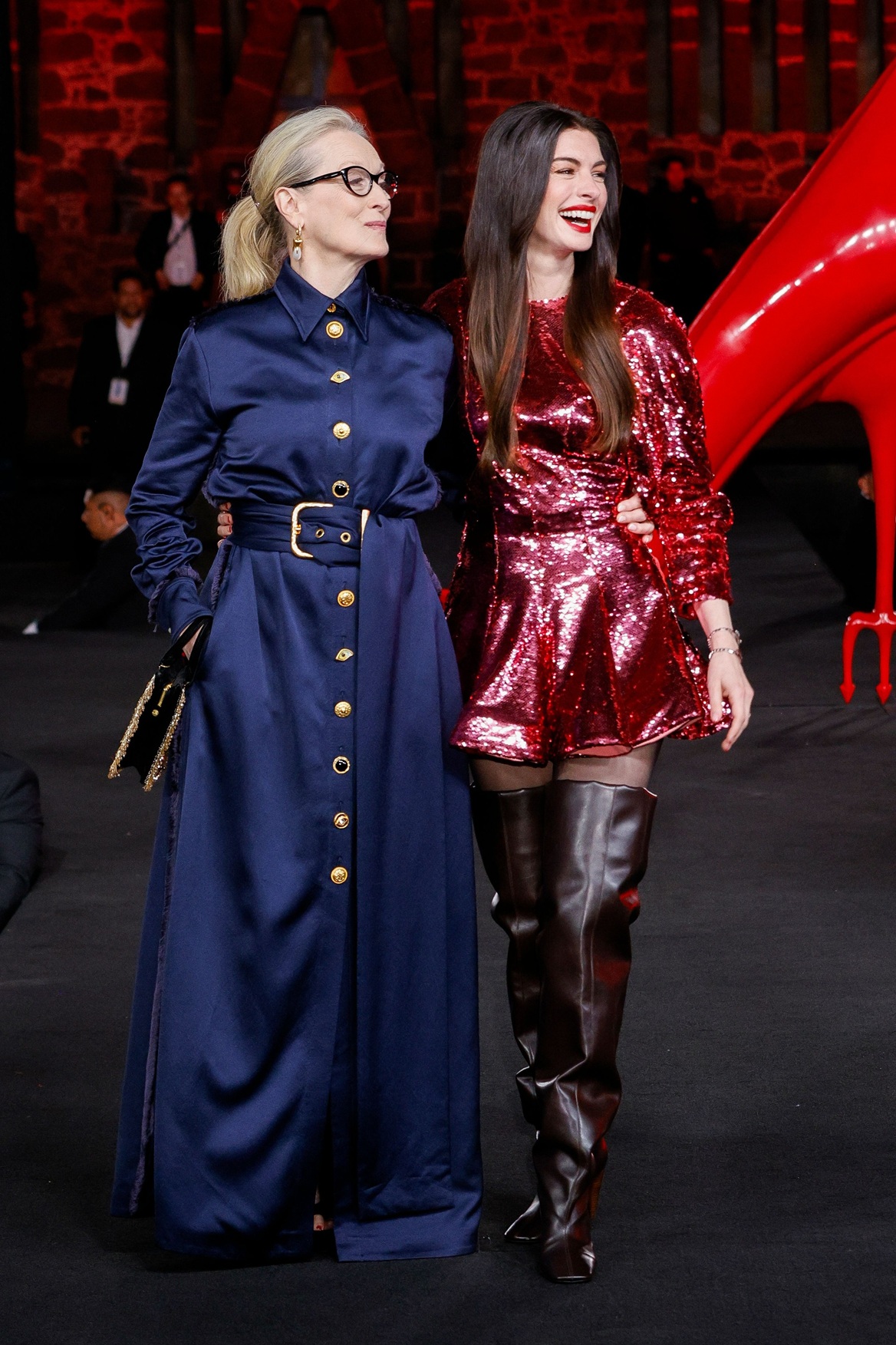 Prva postaja za Meryl Streep, Anne Hathaway in ostalo igralsko zasedbo je bila Mexico City. Na letošnjem tamkajšnjem modnem tednu se je odvila prvi dogodek v sklopu turneje. Streepova je prepričala v elegantni dolgi obleki Schiaparelli z zlatimi detajli, ki so odražali njeno strogo prefinjenost, medtem ko je Anne presenetila z bolj drzno modno potezo. Mini bleščeča obleka Stella McCartney in ekstra visoki škornji (direkt iz modne piste) so pritegnili nekoliko več pozornosti. Morda se zdi za hip to nepričakovana izbira, vendar modna izbira odraža njen lik – pogumno dekle, pripravljeno za nove izzive!